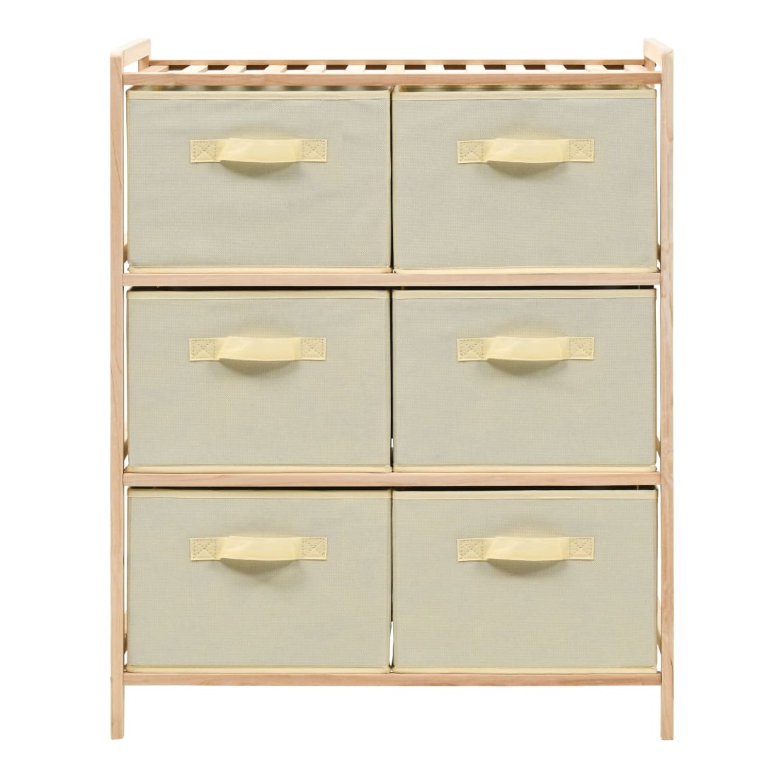 Cette étagère de rangement en bois de cèdre massif avec 6 paniers tissu séparés offrira suffisamment d’espace pour ranger vos objets de tous les jours. L'unité de stockage est légère et peut être facilement placée n'importe où dans votre maison. Les tiroirs de rangement sont fabriqués dans un tissu de couleur claire pour donner une touche élégante à votre intérieur. L'étagère de rangement est facile à assembler.