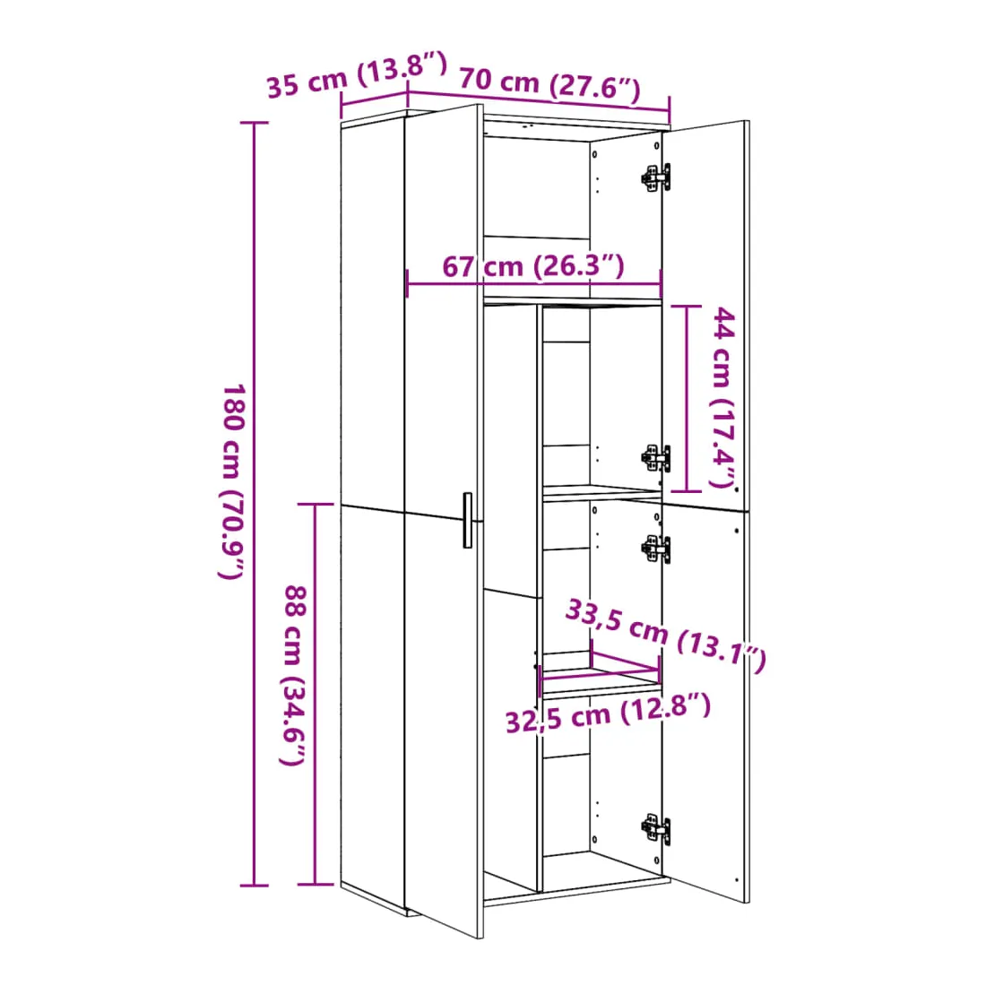 - Dimensions : 70 x 35 x 180 cm (L x l x H)