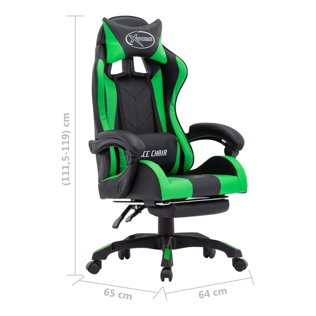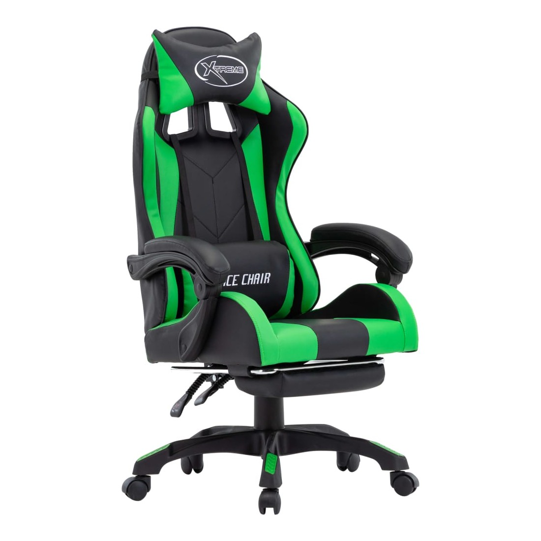 Fauteuil de jeux vidéo avec repose-pied Vert et noir Similicuir