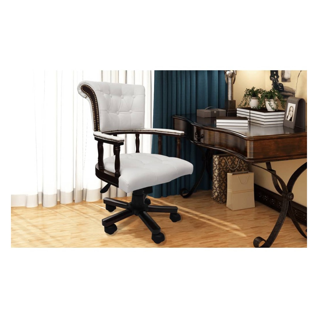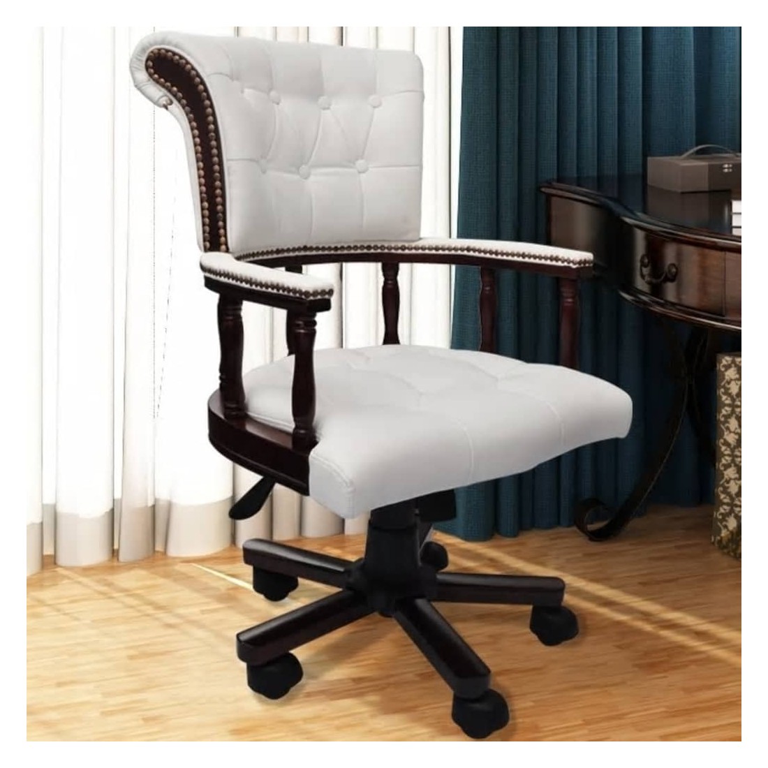 Cette chaise magnifiquement conçue sera un point de mire dans votre bureau ou votre maison. Fabriquée en tissu de mélange de cuir spécial, cette chaise offre un confort d'assise suprême. La surface de l'assise et du dossier a une finition lisse et douce, ce qui lui donne un look exquis. Grâce à la fonction pivotante et à la hauteur d'assise réglable, vous pouvez régler la chaise dans la position parfaite. Le cadre en bois massif contribue au confort et à la stabilité de la chaise, tandis que les roulettes la rendent facile à manœuvrer.