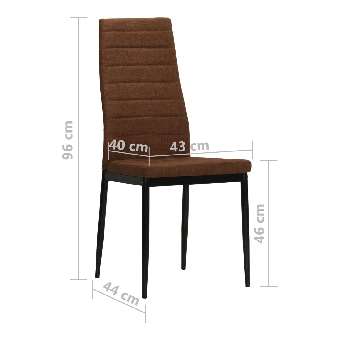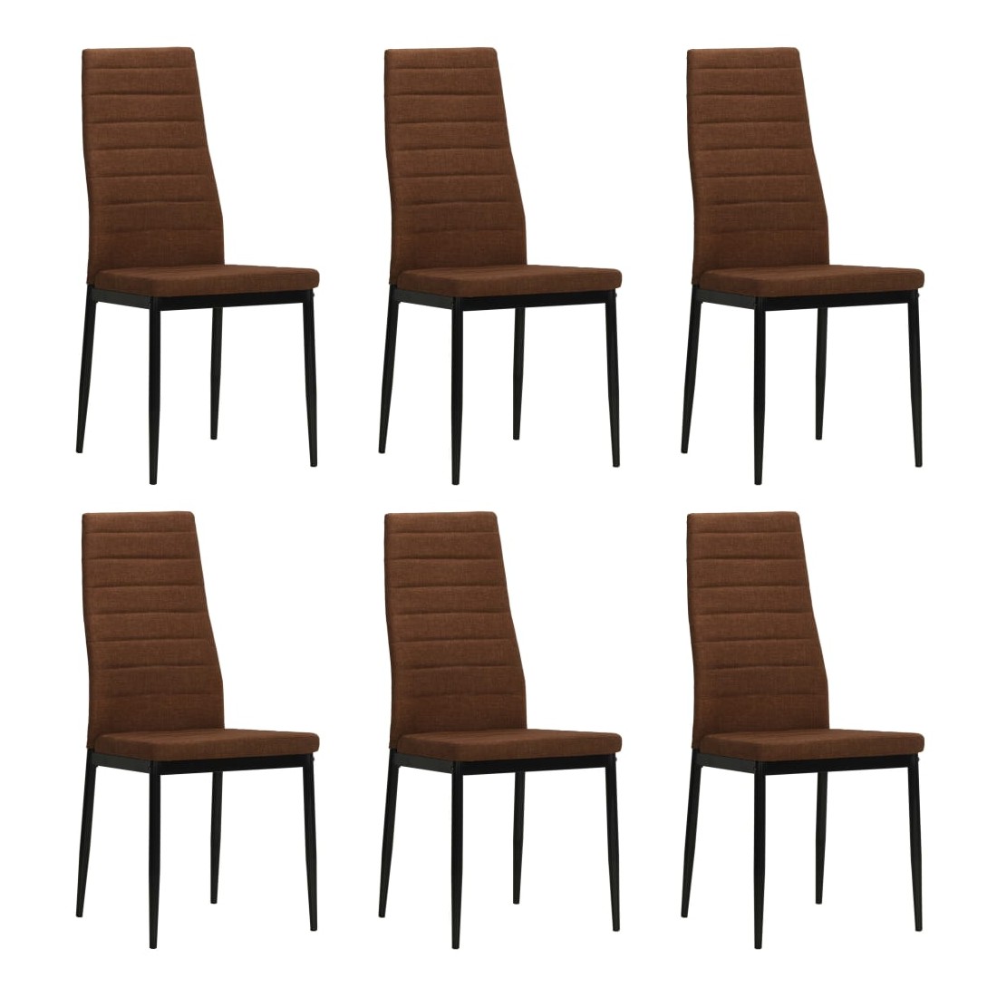 Cet ensemble de 6 chaises à manger, au design épuré et contemporain, s'intégrera parfaitement dans tous les intérieurs. Les chaises sont dotées d'un cadre en acier robuste et sont revêtues d'un tissu en polyester de haute qualité, doux et durable. Grâce à l'assise et au dossier épais, ainsi qu'au design ergonomique, ces chaises à manger sont très confortables. Les chaises sont faciles à assembler. La livraison comprend 6 chaises de salle à manger.