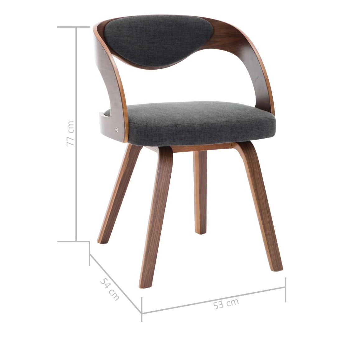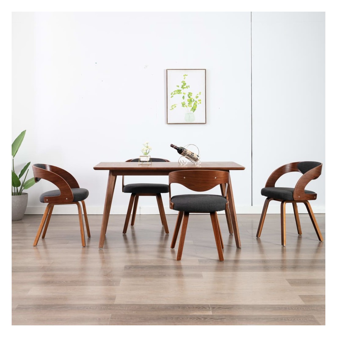 Chaises à manger lot de 4 gris foncé bois courbé et tissu