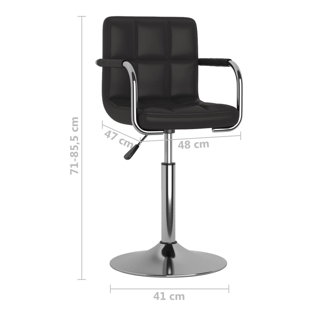 Avec un design soigné mais intemporel, cette chaise de salle à manger vous apportera sûrement le plus grand confort d'assise. La chaise de cuisine est tapissée en similicuir facile à nettoyer pour offrir un confort optimal. Le cadre en acier chromé offre une grande robustesse et stabilité. Grâce au mécanisme de levage à gaz, cette chaise pivotante de salle à manger peut être réglée en hauteur et s’ajoute parfaitement à tout bar fonctionnel ou coin repas. Elle peut également pivoter à 360 degrés pour une grande flexibilité.