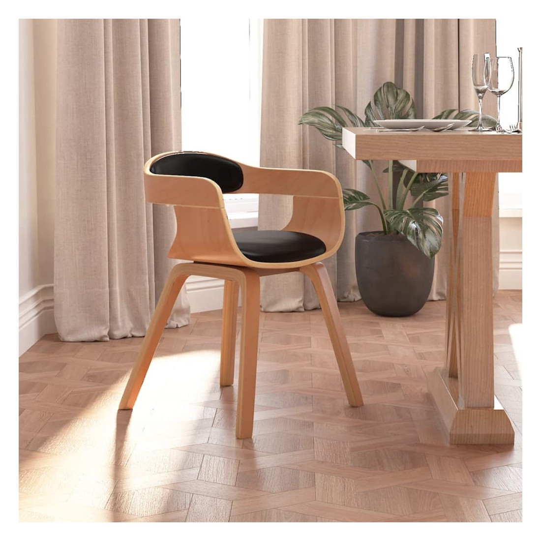 Cette chaise de salle à manger élégante au design esthétique et ergonomique constitue un supplément décoratif et confortable à votre salle à manger et à votre cuisine. La chaise de salle à manger est rembourrée en similicuir, doux pour vous asseoir et facile à nettoyer. Grâce au siège et au dossier rembourrés en mousse, cette chaise de cuisine offre un confort d'assise optimal. Les pieds en bois courbé de haute qualité rendent la chaise très solide et durable et ajoutent à son aspect chic.