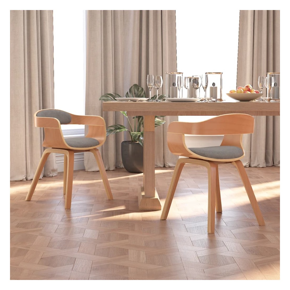 Cet ensemble de chaises de salle à manger élégant au design esthétique et ergonomique constitue un supplément décoratif et confortable à votre salle à manger et à votre cuisine. La chaise de salle à manger est tapissée en tissu, doux pour vous asseoir et durable. Grâce au siège et au dossier rembourrés en mousse, cette chaise de cuisine offre un confort d'assise optimal. Les pieds en bois courbé de haute qualité rendent la chaise très solide et durable et ajoutent à son aspect chic.