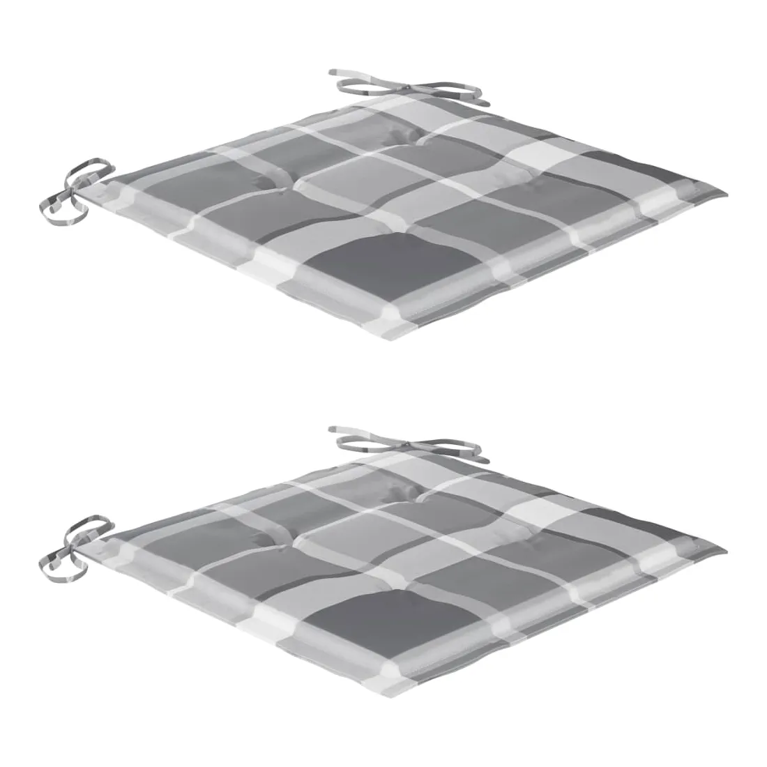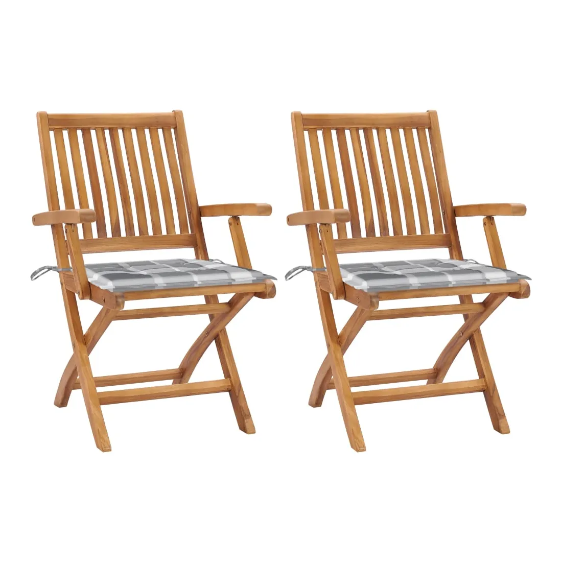 Chaises de jardin lot de 2 avec coussins à carreaux gris Teck