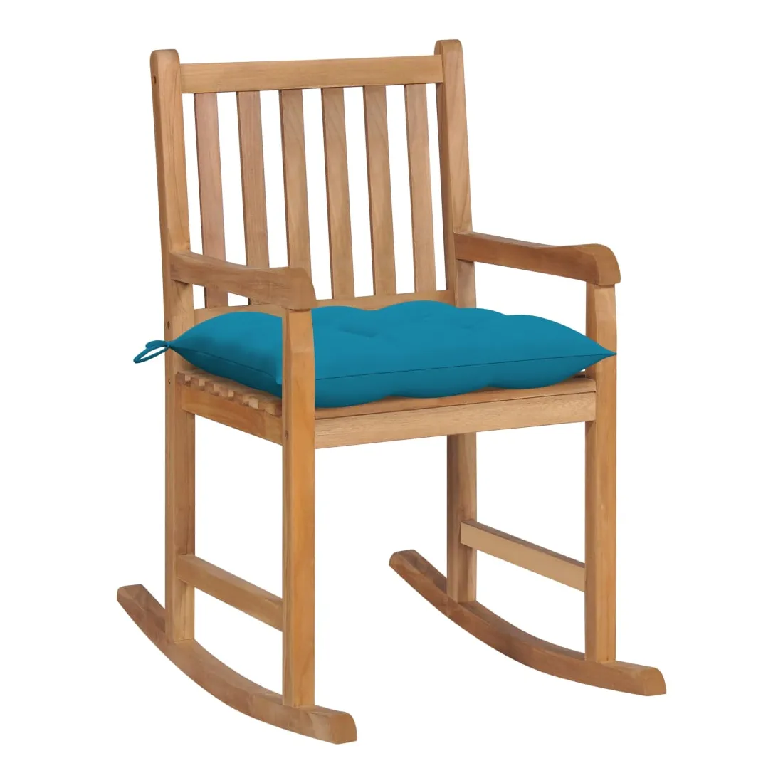 Chaise à bascule avec coussin bleu clair Bois de teck solide