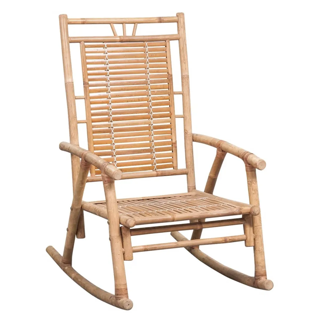 Cette chaise à bascule en bambou est un excellent choix pour vous détendre dans votre jardin ou sur votre véranda. Fabriquée en bambou massif, cette chaise de patio est facile à nettoyer, solide et durable. Résistant aux UV et aux intempéries, le fauteuil en bambou peut être utilisé à l’intérieur comme à l’extérieur. La chaise à bascule sera un excellent supplément à tout espace de vie. De plus, le coussin inclus offre du confort supplémentaire pour vous prélasser. Il est fait de 100 % polyester qui a été traité pour le rendre imperméable. Chaque coussin a une bande élastique et deux ensembles de cordes pour le fixer fermement sur la chaise.