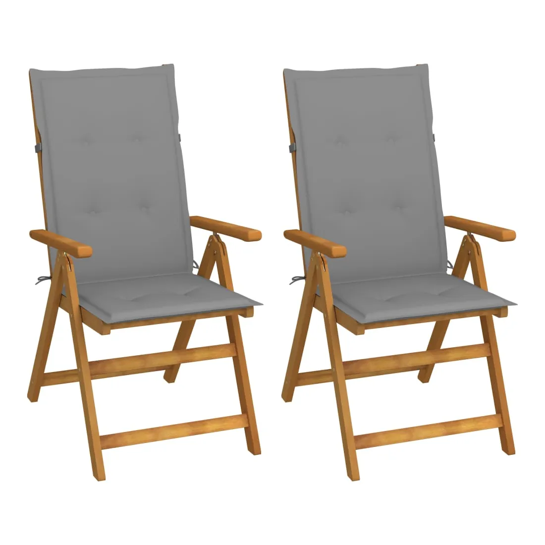 Chaises inclinables de jardin lot de 2 et coussins Bois acacia