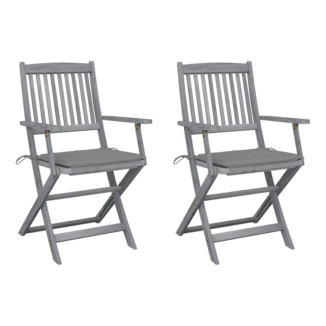 Chaises pliables d'extérieur lot de 2 et coussins Bois d'acacia
