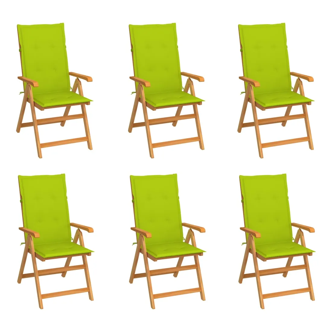 Chaises de jardin lot de 6 avec coussins vert vif Bois de teck