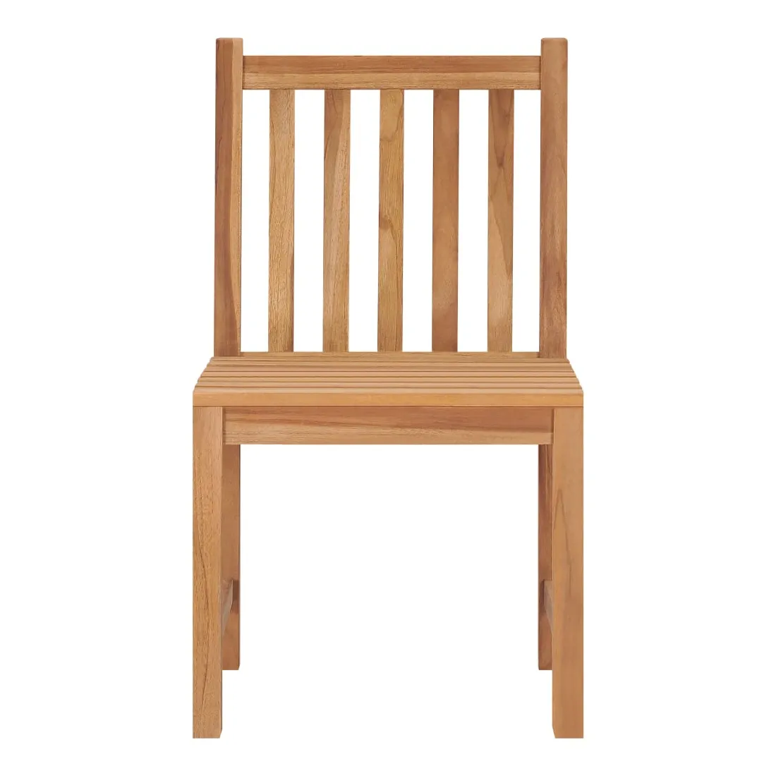 Cet ensemble de chaises de jardin en bois robuste sera un endroit idéal pour vous détendre et profiter du soleil dans votre jardin ou patio. Fabriquée en bois dur de teck extrêmement durable, cette pièce de meuble en teck a été chevronnée, séchée au four puis finement poncée pour lui donner un aspect très lisse. Le bois de teck est connu pour sa résistance exceptionnelle aux intempéries, ce qui le rend bien plus adapté aux meubles de jardin que tout autre type de bois. Le bois de teck est le choix idéal si vous souhaitez acheter un meuble de jardin durable. Une belle finition à base d’eau est appliquée pour donner au bois une couleur chaude. Les chaises d’extérieur stables disposent d’un aspect raffiné qui peut instantanément se fondre dans n’importe quel espace de vie. Remarque : Afin de prolonger la durée de vie de vos meubles d'extérieur, nous vous recommandons de les nettoyer régulièrement et de ne pas les laisser à l'extérieur sans protection inutilement.Nettoyage : Utiliser une solution savonneuse douceStockage : Si possible, stockez dans un endroit frais et sec à l'intérieur. Si le produit est stocké à l'extérieur, protégez-le avec une housse imperméable. Essuyez et séchez l'excès d'eau ou de neige des surfaces planes après la pluie ou une chute de neige. Permettez une circulation d'air suffisante afin d'éviter les dommages liés à l'humidité.