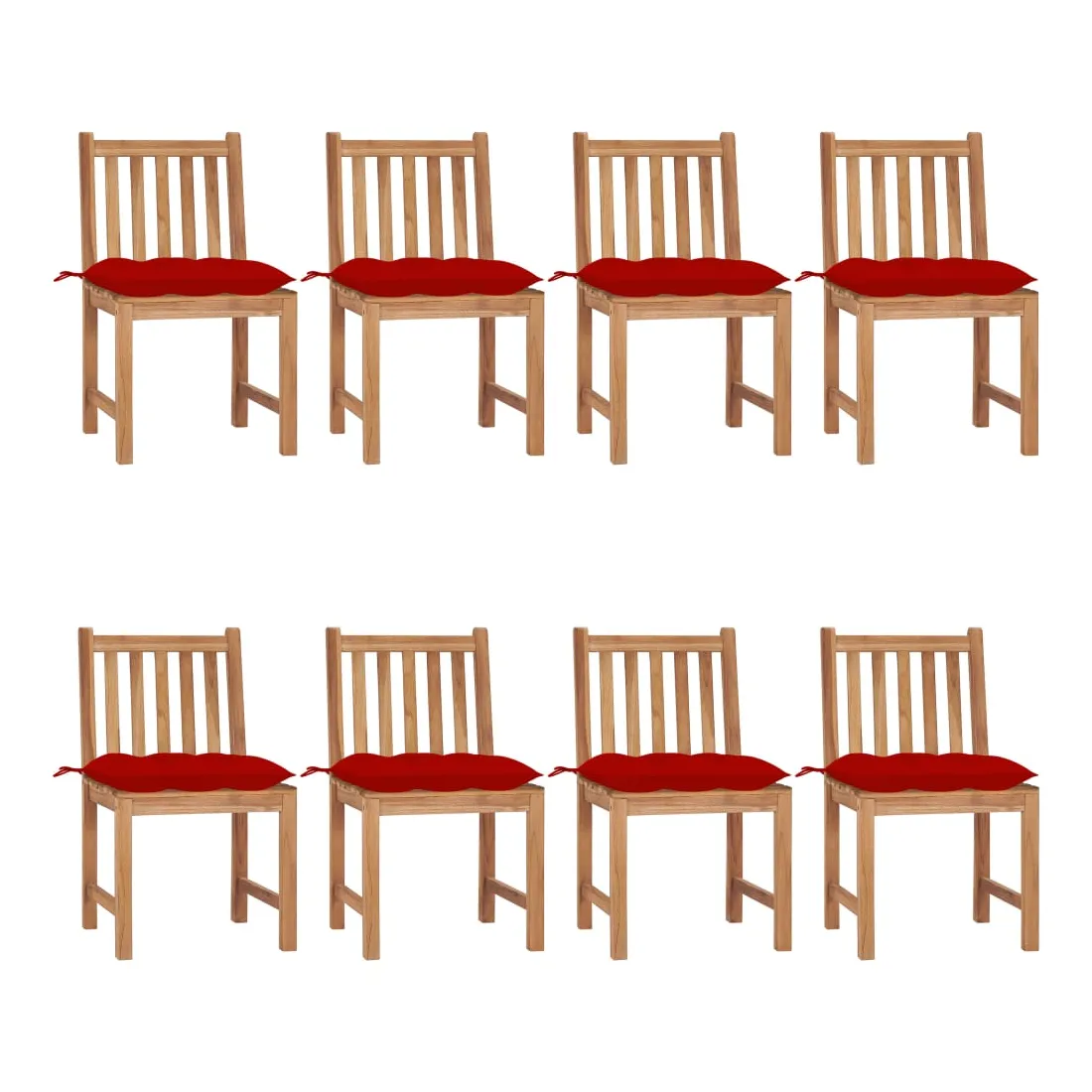 Chaises de jardin lot de 8 avec coussins Bois de teck massif