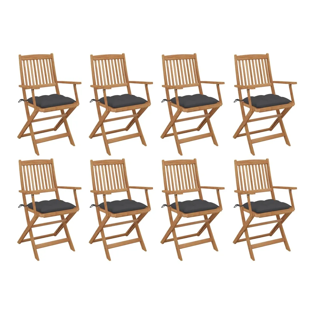 Chaises pliables d'extérieur et coussins lot de 8 Bois d'acacia