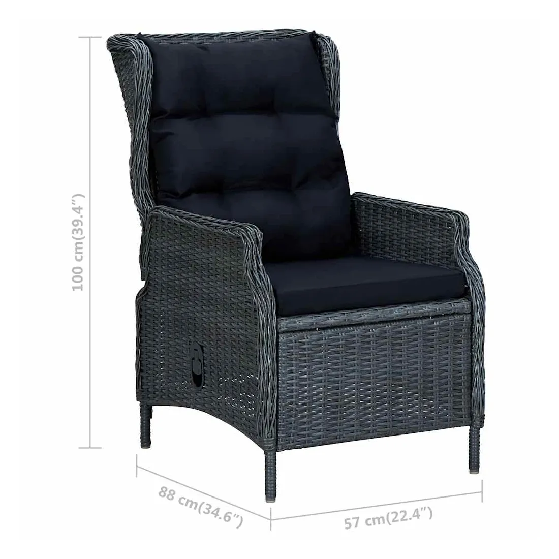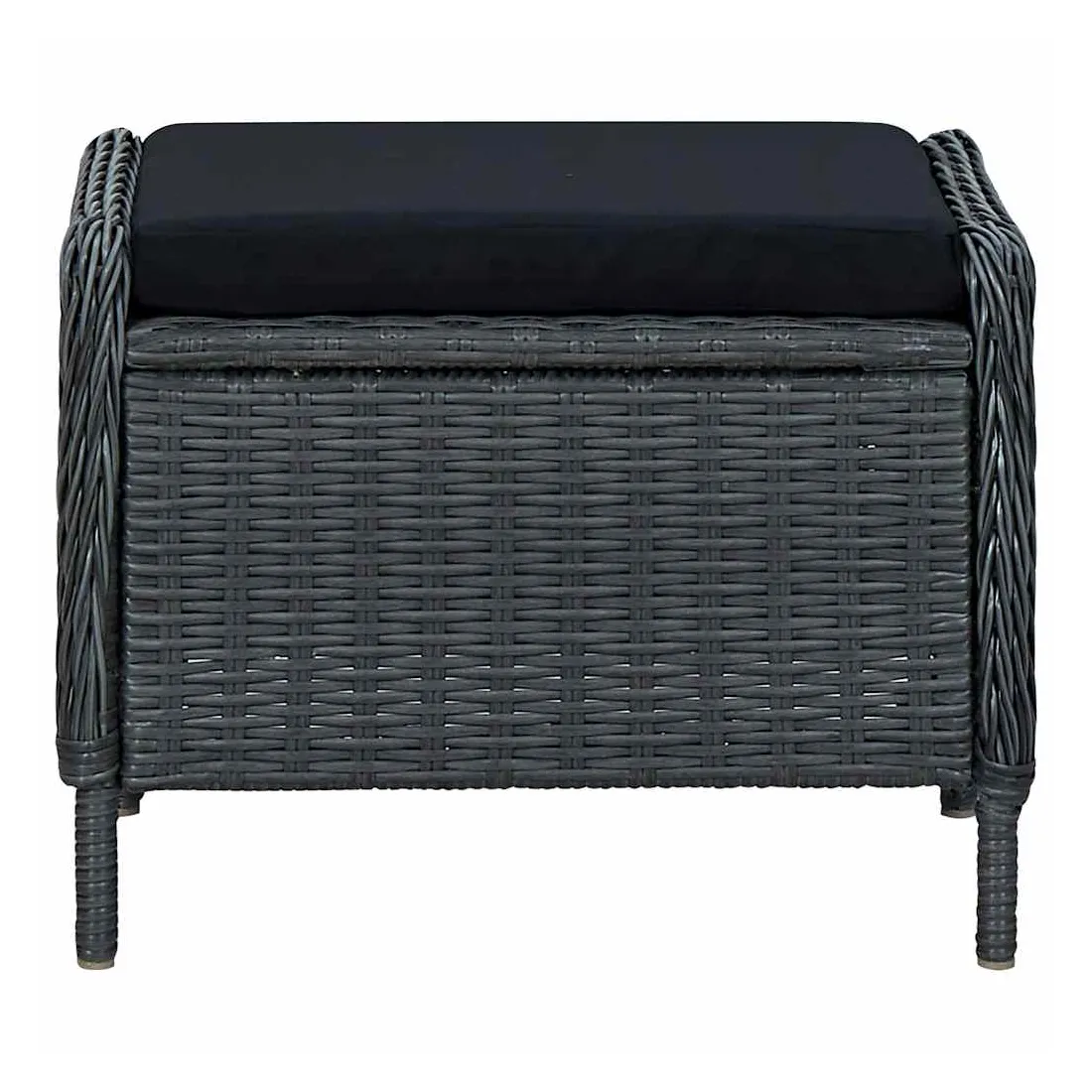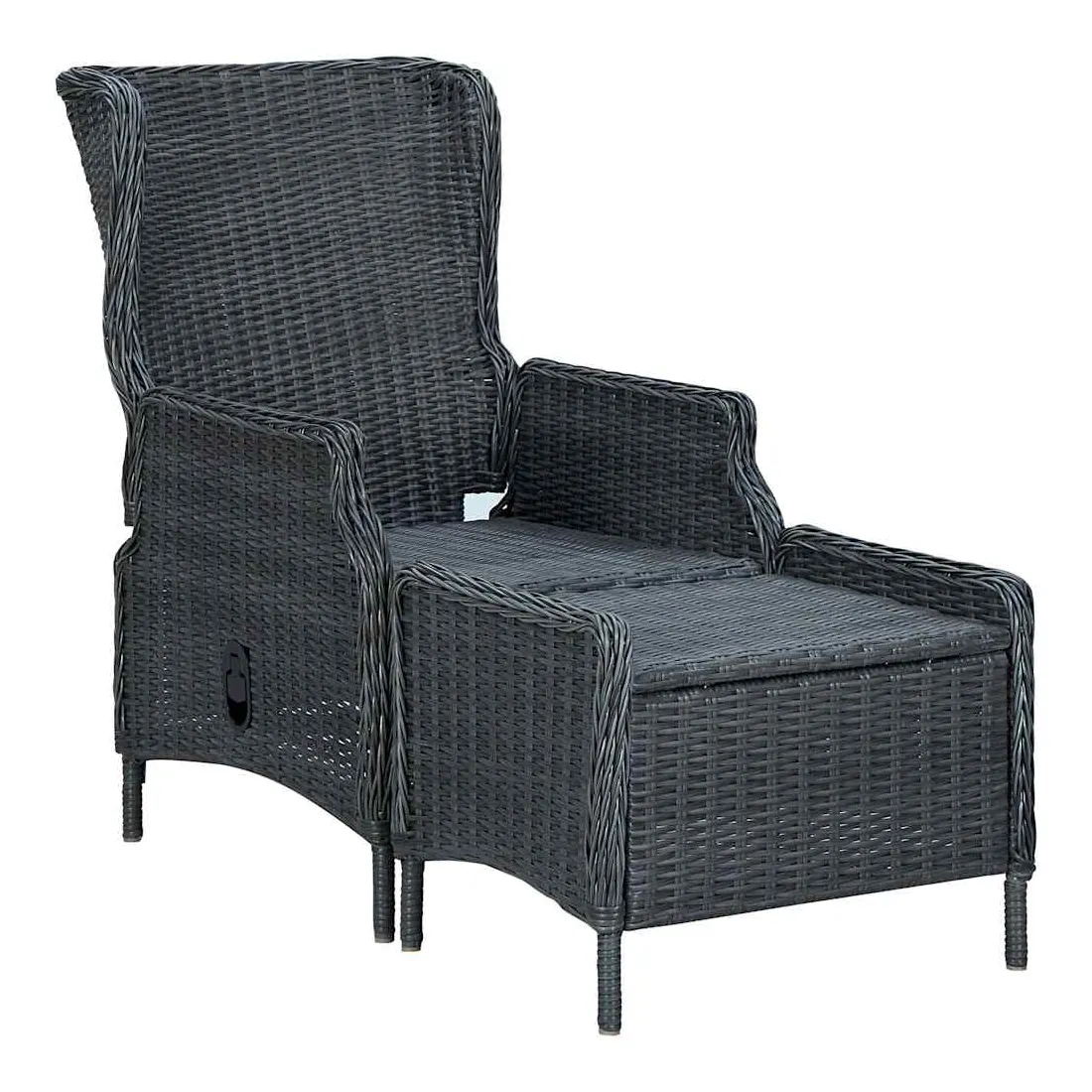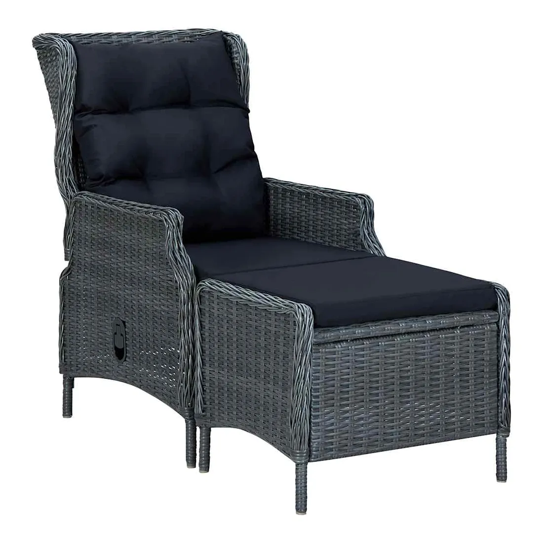 Chaise inclinable de jardin tabouret résine tressée gris foncé