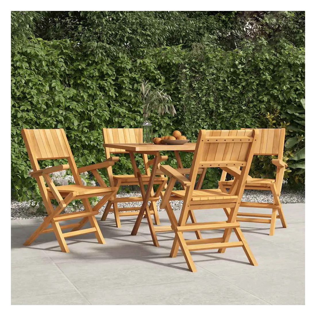Profitez d'un moment de détente agréable avec votre famille et vos amis dans votre espace extérieur sur ces chaises de jardin pliantes en bois ! Bois de teck massif : le bois de teck massif est un matériau naturel magnifique. Il a été chevronné, séché au four, puis sablé finement pour lui donner une apparence très lisse. Le bois de teck est connu pour sa résistance exceptionnelle et sa résistance aux intempéries.Fonction pliable : la chaise de jardin peut être pliée pour gagner de la place lorsqu'elle n'est pas utilisée.Expérience confortable : le dossier et les accoudoirs des sièges de jardin vous offrent un excellent soutien, offrant une expérience confortable optimale.Design à lattes : la chaise d'extérieur au design à lattes est simple et intemporelle. Remarque :Pour que vos meubles d'extérieur restent beaux, nous vous recommandons de les protéger avec une housse imperméable.Bon à savoir :Pour faciliter au maximum le montage, chaque produit est livré avec des instructions.