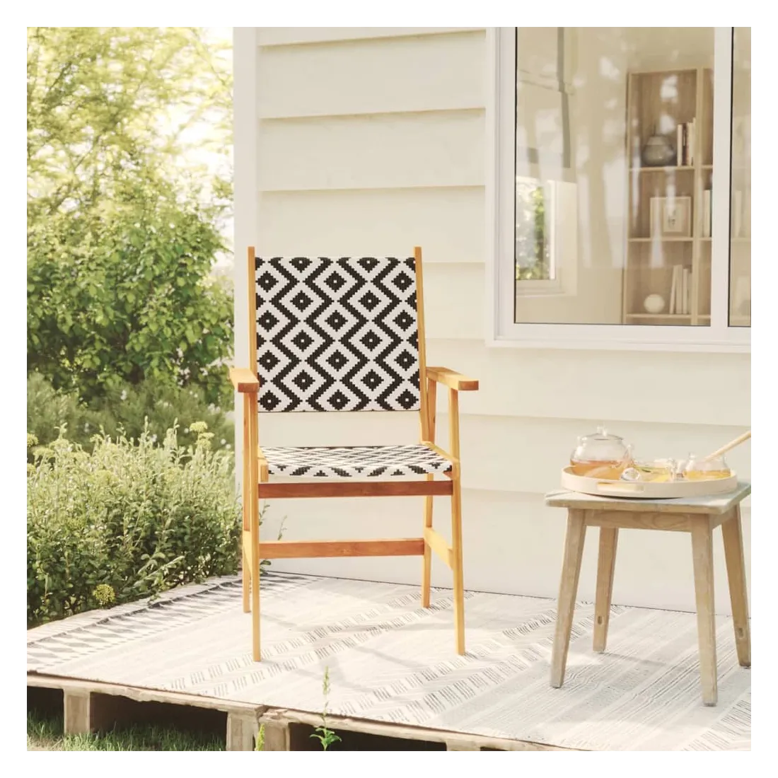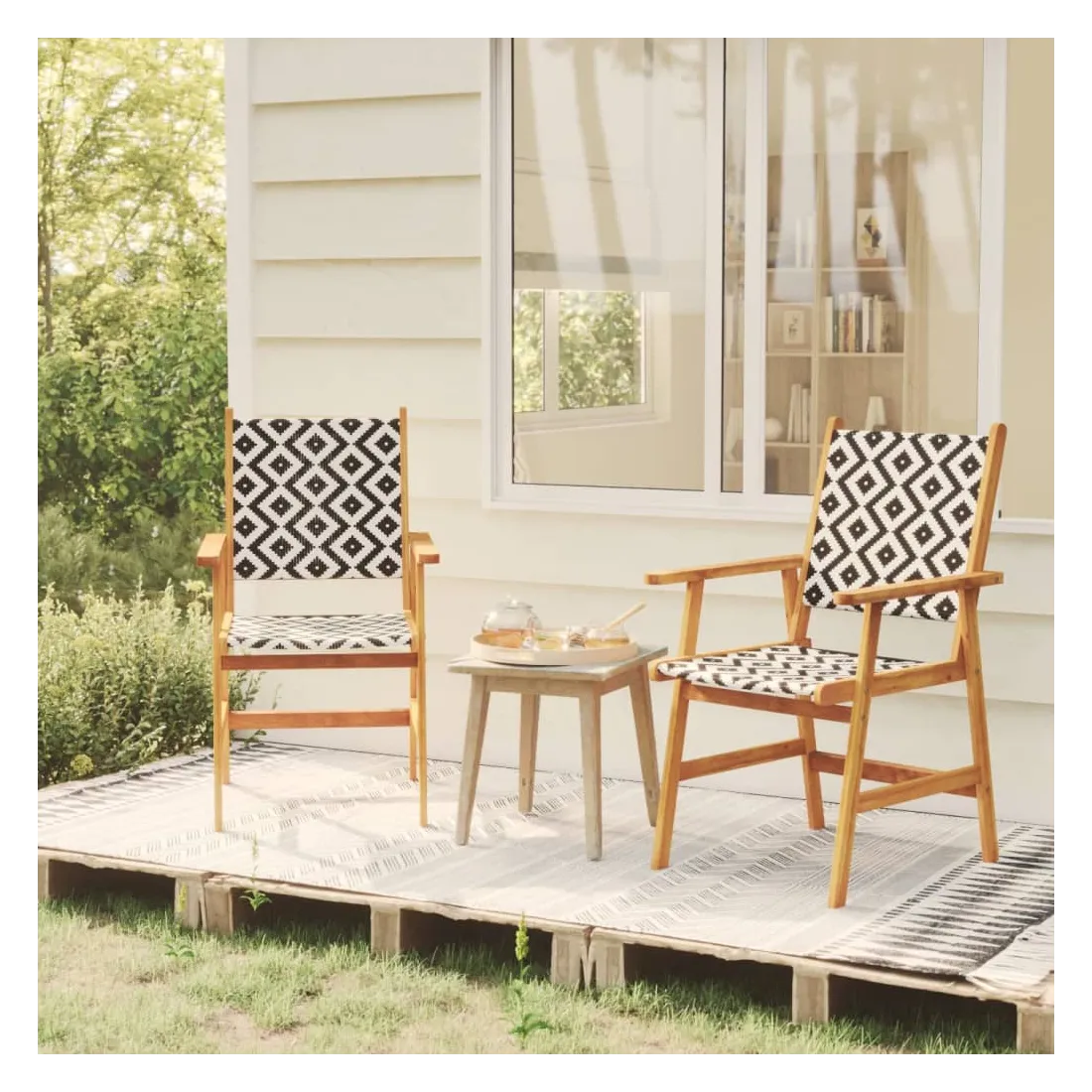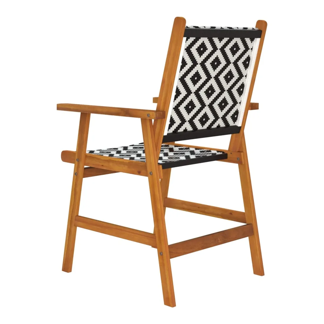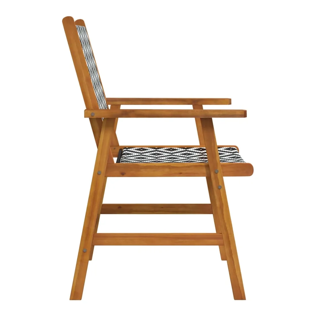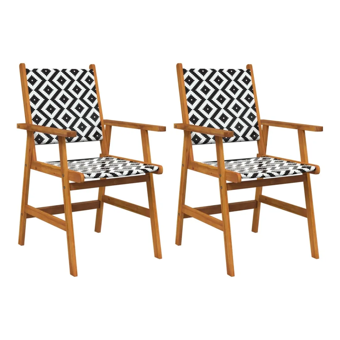 Ces chaises de jardin en bois constituent un endroit idéal pour vous détendre et profiter du soleil dans votre jardin ou sur votre patio. Avec le dossier et l'espace d'assise en résine tressée, ces chaises d'extérieur offrent un confort d'assise maximal et sont également faciles à nettoyer. Grâce au motif en treillis attrayant, les chaises de terrasse attirent l'attention dans n'importe quel espace de vie. Apportez ces chaises de jardin pour ajouter une touche de plaisir et de confort à votre jardin ou terrasse ! Remarque : Afin de prolonger la durée de vie de vos meubles d'extérieur, nous vous recommandons de les nettoyer régulièrement et de ne pas les laisser à l'extérieur sans protection inutilement.Nettoyage : Utiliser une solution savonneuse douce.Stockage : Si possible, stockez dans un endroit frais et sec à l'intérieur. Si le produit est stocké à l'extérieur, protégez-le avec une housse imperméable. Essuyez et séchez l'excès d'eau ou de neige des surfaces planes après la pluie ou une chute de neige. Permettez une circulation d'air suffisante afin d'éviter les dommages liés à l'humidité.