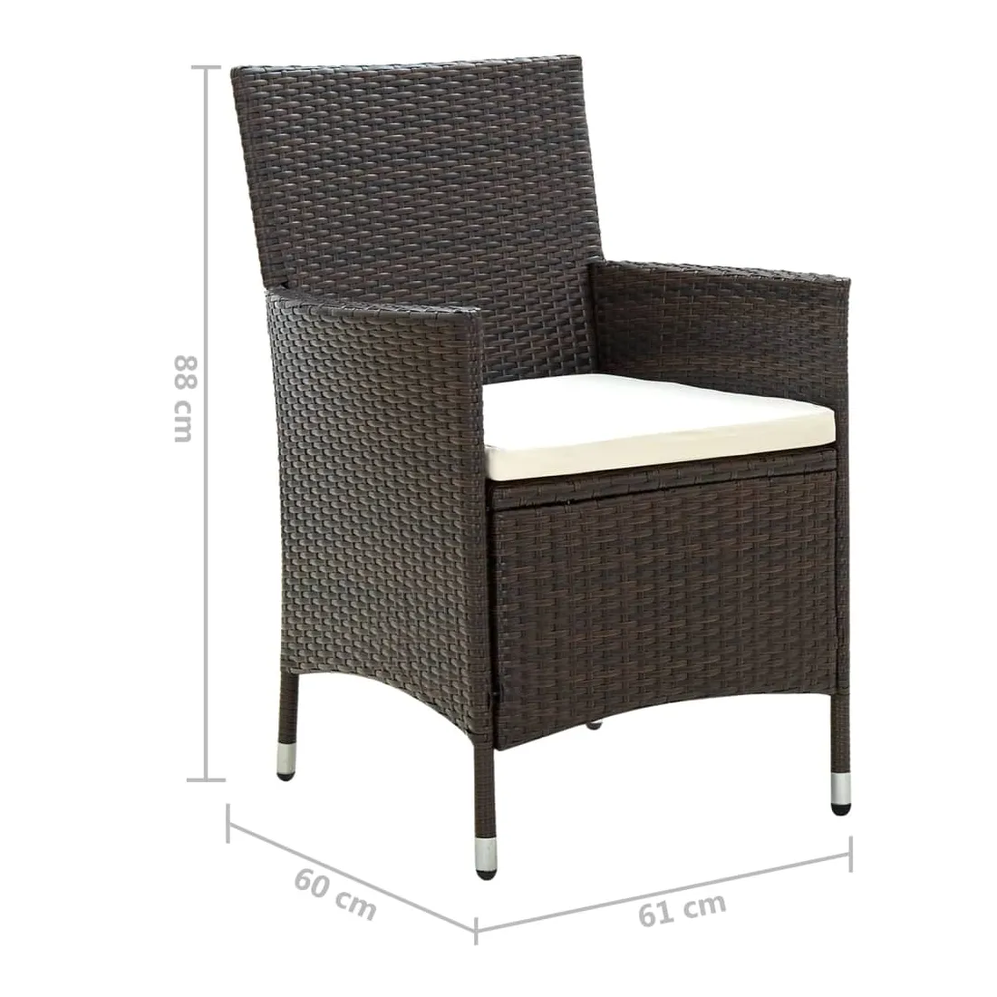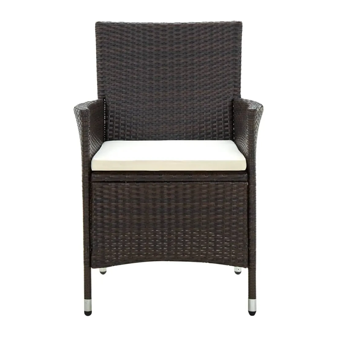vidaXLDînez avec les membres de votre famille ou profitez simplement du temps dans votre espace extérieur avec cet ensemble de chaises de jardin. La chaise d’extérieur est fabriquée à partir d’un solide cadre en acier enduit de poudre, ce qui la rend robuste et stable pour des années de détente. Le fauteuil recouvert de résine tressée est facile à nettoyer avec un chiffon humide et convient à une utilisation quotidienne à l’extérieur. De plus, le coussin d'assise bien rembourré ajoute un confort supplémentaire à la chaise. Remarque : afin de prolonger la durée de vie de vos meubles d'extérieur, nous vous recommandons de les nettoyer régulièrement et de ne pas les laisser à l'extérieur sans protection inutilement.Nettoyage : Utiliser une solution savonneuse douce.Stockage : si possible, stockez dans un endroit frais et sec à l'intérieur. Si le produit est stocké à l'extérieur, protégez-le avec une housse imperméable. Essuyez et séchez l'excès d'eau ou de neige des surfaces planes après la pluie ou une chute de neige. Permettez une circulation d'air suffisante afin d'éviter les dommages liés à l'humidité.