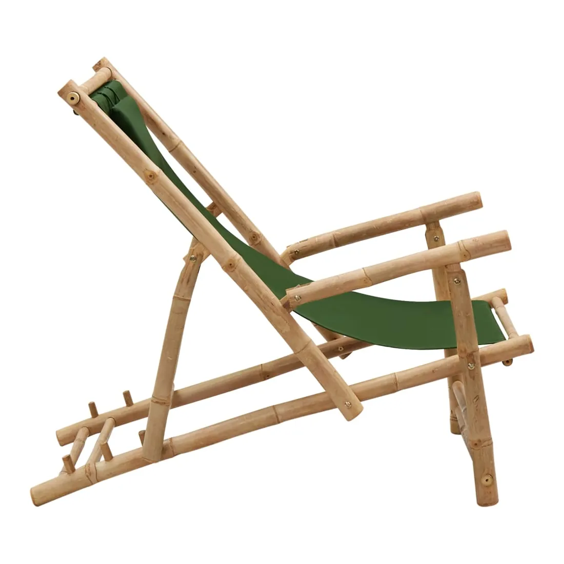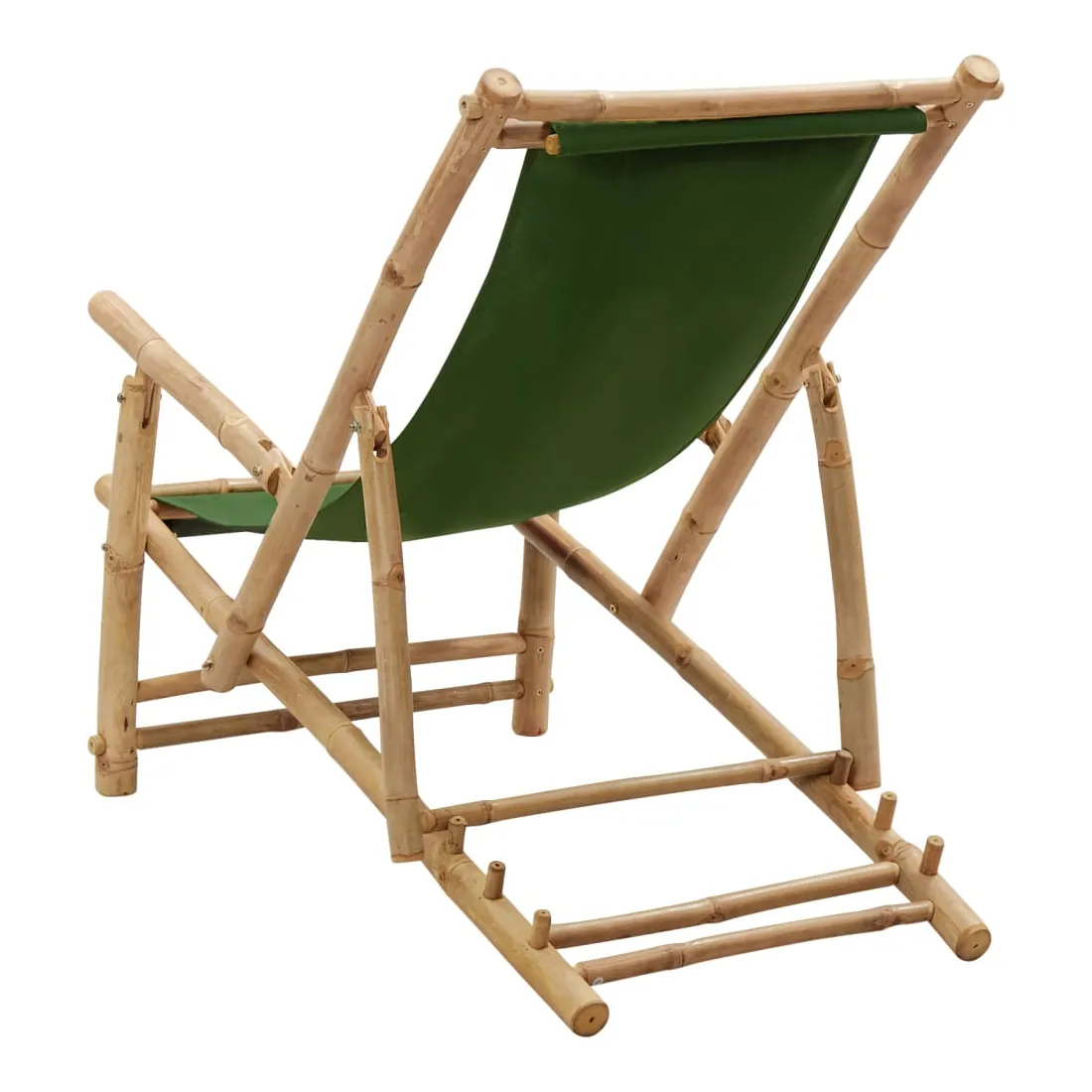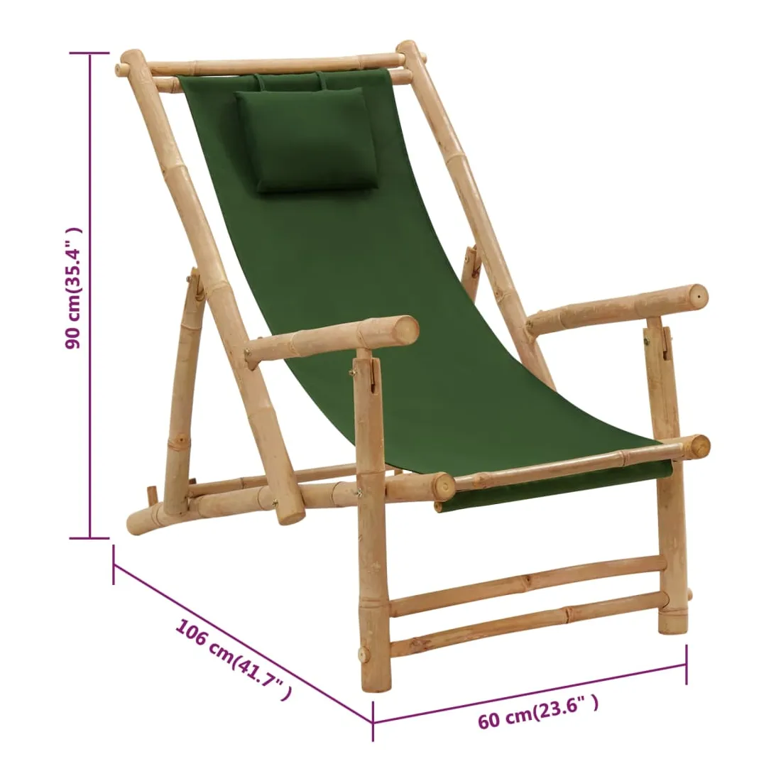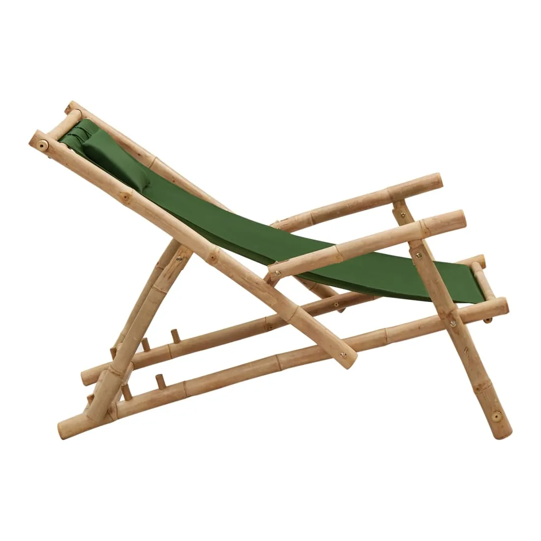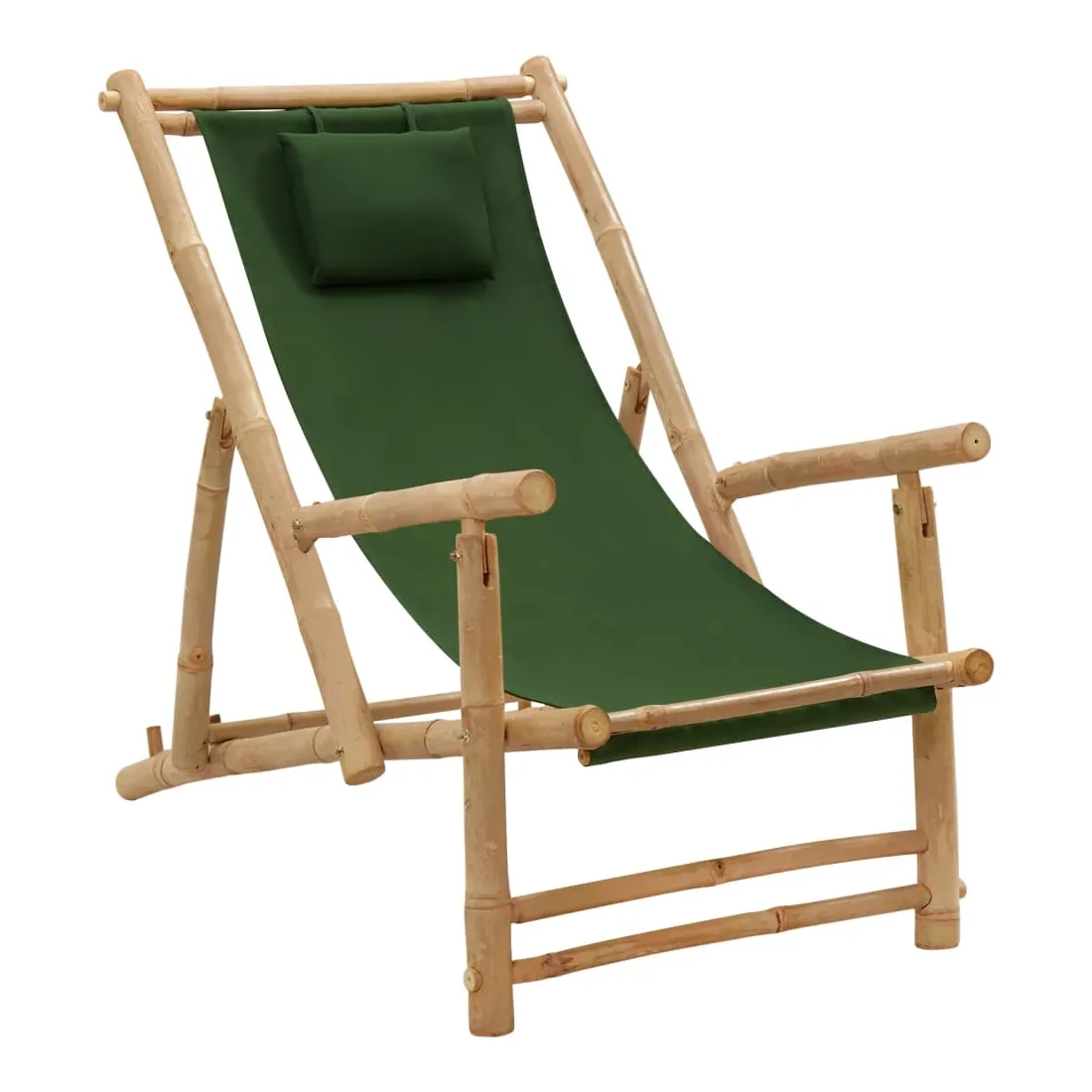 vidaXLCette chaise de terrasse en bambou réglable en hauteur avec accoudoirs est conçue pour être un supplément fabuleux à votre jardin, patio ou terrasse. Matériau de première qualité : la toile est un tissu uni largement utilisé, connu pour sa robustesse, sa résistance à l'eau, sa légèreté et son utilisation intensive. De plus, il a un tissage plus serré que la plupart des tissus tissés, ce qui le rend plus rigide et durable.Cadre stable : le cadre de la chaise est fabriqué en bambou , qui est extrêmement durable. Le matériau ne change pas de couleur pendant longtemps et empêche la chaise de plage de se fissurer et de se déformer.Design pliable : la chaise longue peut être pliée pour économiser de l'espace lorsqu'elle n'est pas utilisée.Dossier réglable : grâce au dossier réglable, la chaise de jardin en bambou peut être ajustée en 3 positions. Par conséquent, vous pouvez profiter d'un confort maximal. Remarque :Afin de prolonger la durée de vie de votre mobilier d'extérieur, nous vous recommandons de le protéger avec une housse imperméable.