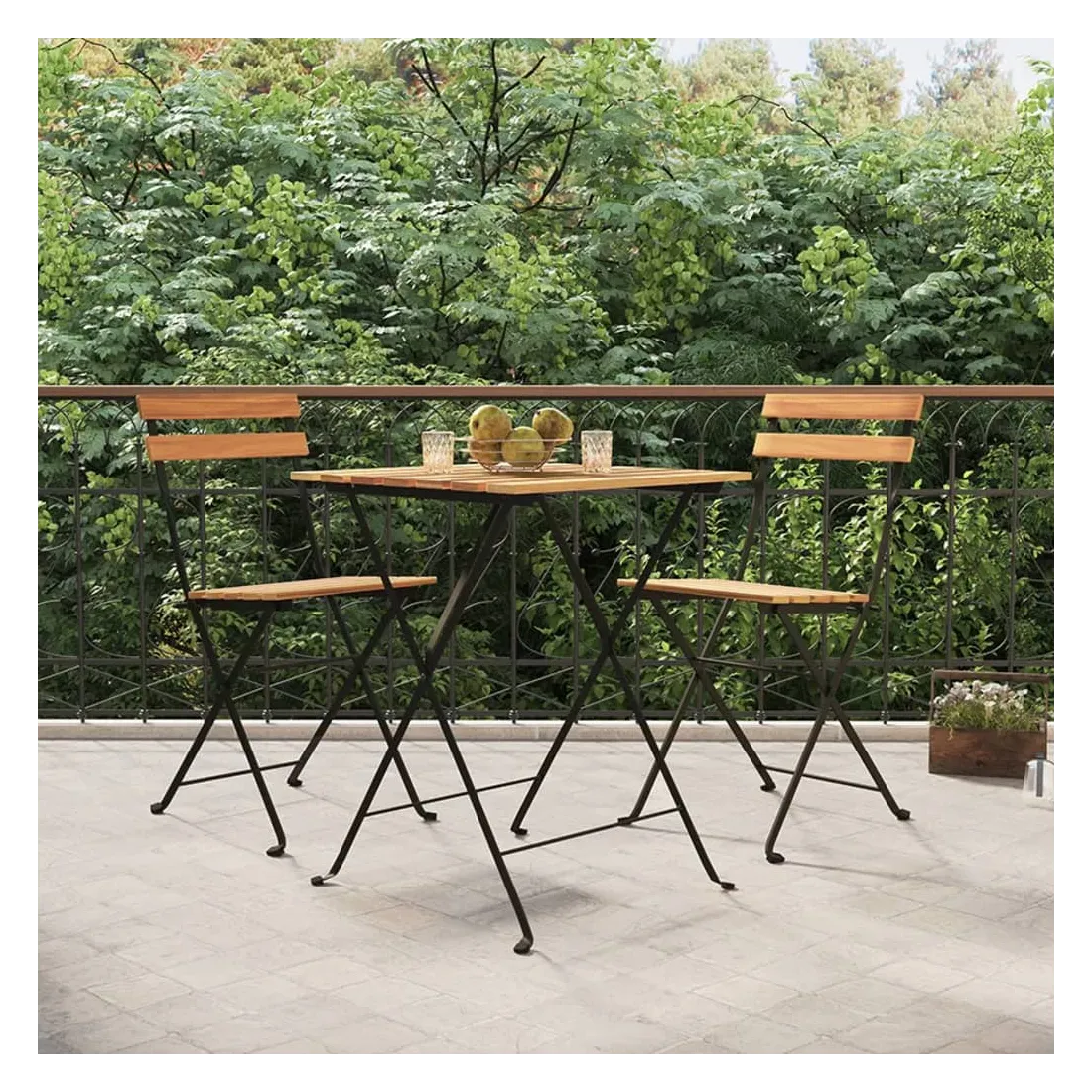 Ces chaises de bistrot pliantes sont un complément parfait à votre jardin et à votre terrasse, créant une impression durable ! Matériau durable : le bois de teck massif est un beau matériau naturel. Il a été chevronné, séché au four, puis sablé finement pour lui donner une apparence très lisse. Le bois de teck est connu pour sa résistance exceptionnelle et sa résistance aux intempéries.Cadre stable : le cadre en acier enduit de poudre assure la robustesse et la stabilité.Design pliable : les chaises peuvent être facilement repliées lorsqu'elles ne sont pas utilisées pour faciliter le rangement et le transport. Remarque :Afin de prolonger la durée de vie de votre mobilier d'extérieur, nous vous recommandons de le protéger avec une housse imperméable.Chaque produit est livré avec un manuel de montage dans la boîte pour un montage facile.