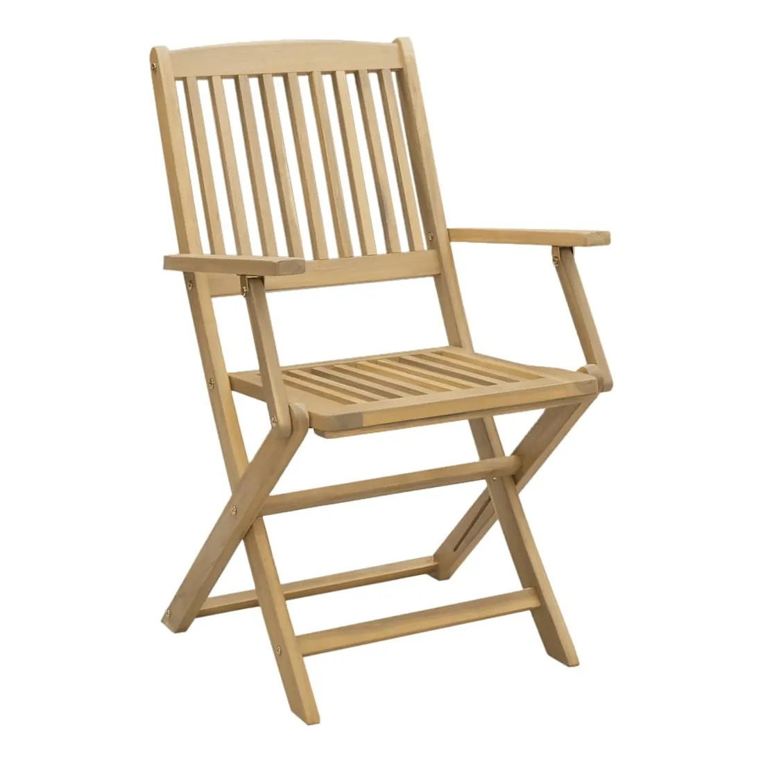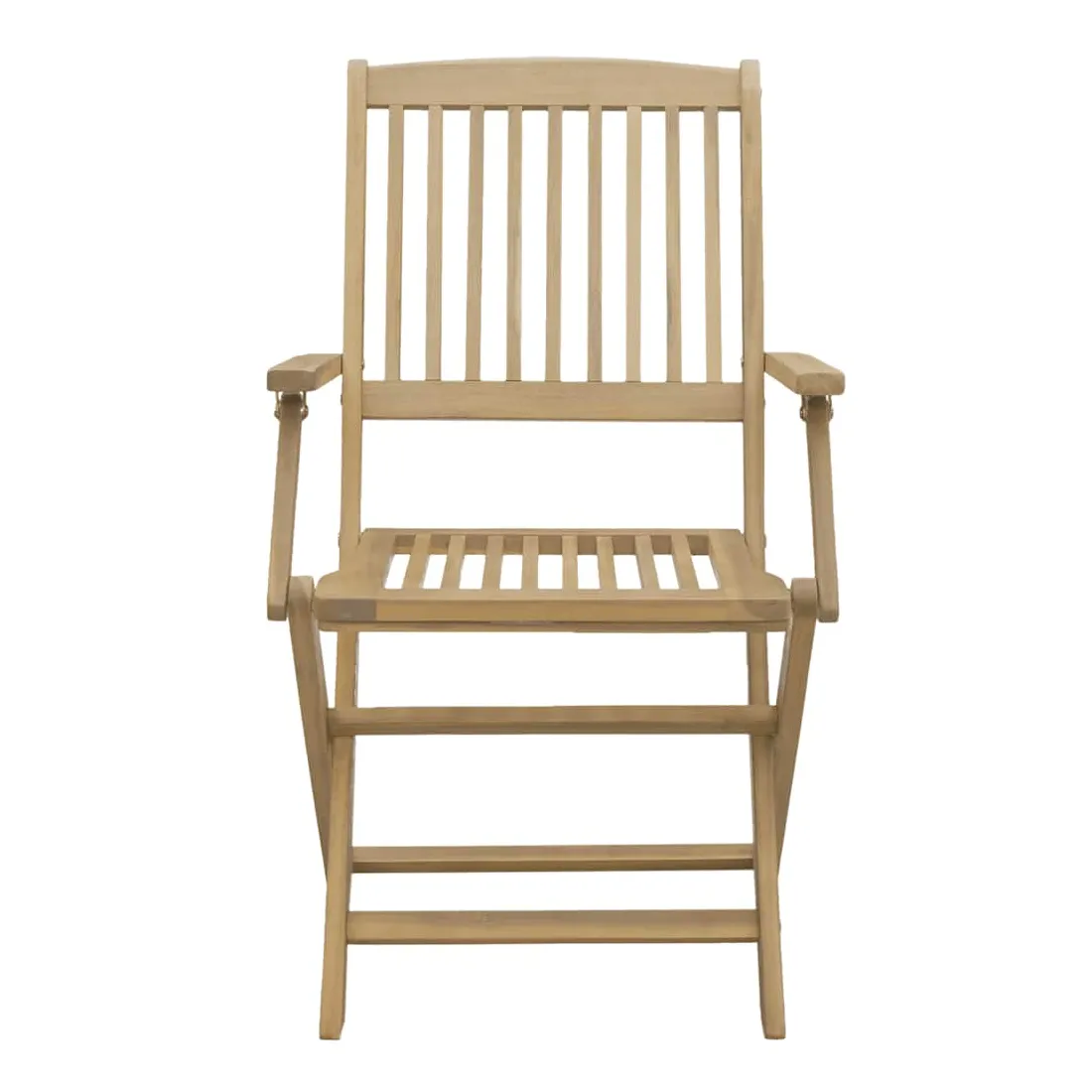 Ces chaises de jardin en bois complèteront à merveille votre jardin, patio ou terrasse, vous permettant de passer des moments agréables avec votre famille ou vos amis. Bois d'acacia massif : le siège de jardin est fabriqué en bois d'acacia massif pour plus de robustesse et de stabilité. Le bois d'acacia massif est un beau matériau naturel. Le bois d'acacia a un grain droit et les nœuds donnent au matériau son aspect caractéristique et rustique.Une expérience d'assise confortable : dotée d'accoudoirs et d'un dossier, la chaise d'extérieur vous offre un confort optimal.Design à lattes : le design à lattes de la chaise de jardin en bois empêche l'accumulation de l'eau, ce qui permet de garder le siège au sec et d'éviter un pourrissement inutile.Design pliable : la chaise de patio peut être facilement pliée lorsqu'elle n'est pas utilisée, pour un rangement et un transport faciles. Bon à savoir :Pour que vos meubles d'extérieur restent beaux, nous vous recommandons de les protéger avec une housse imperméable.