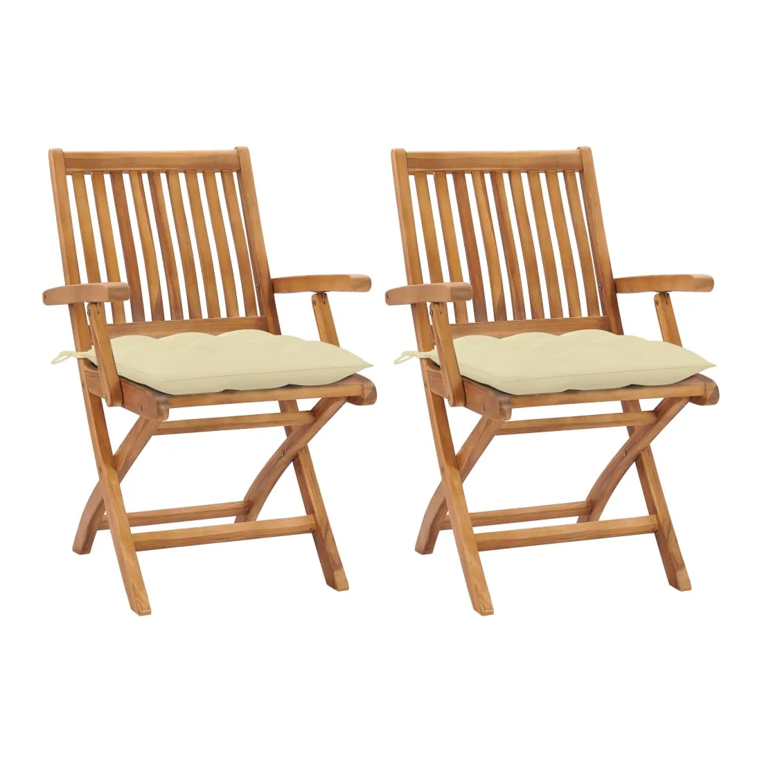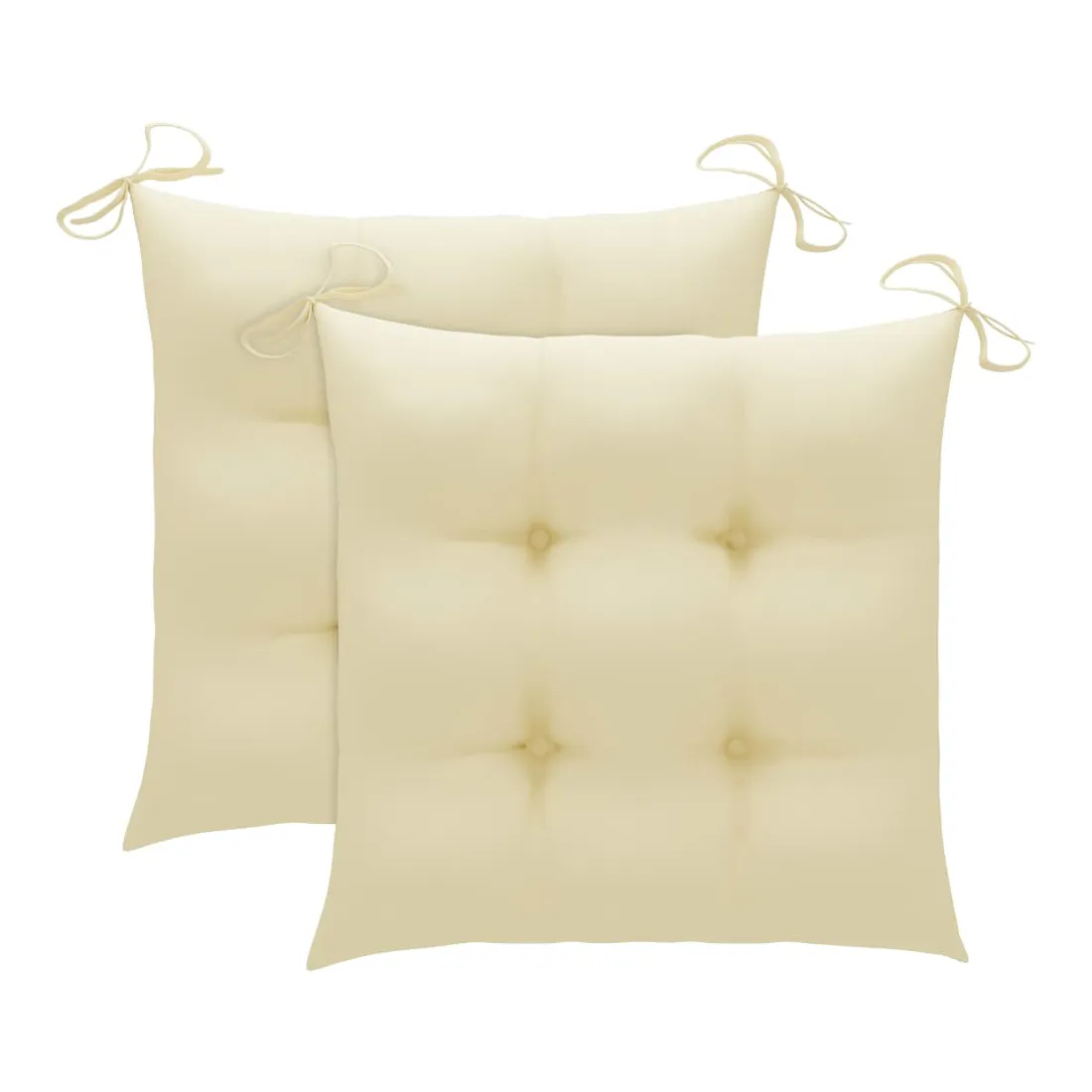 Chaises de jardin lot de 2 et coussins blanc crème Teck massif