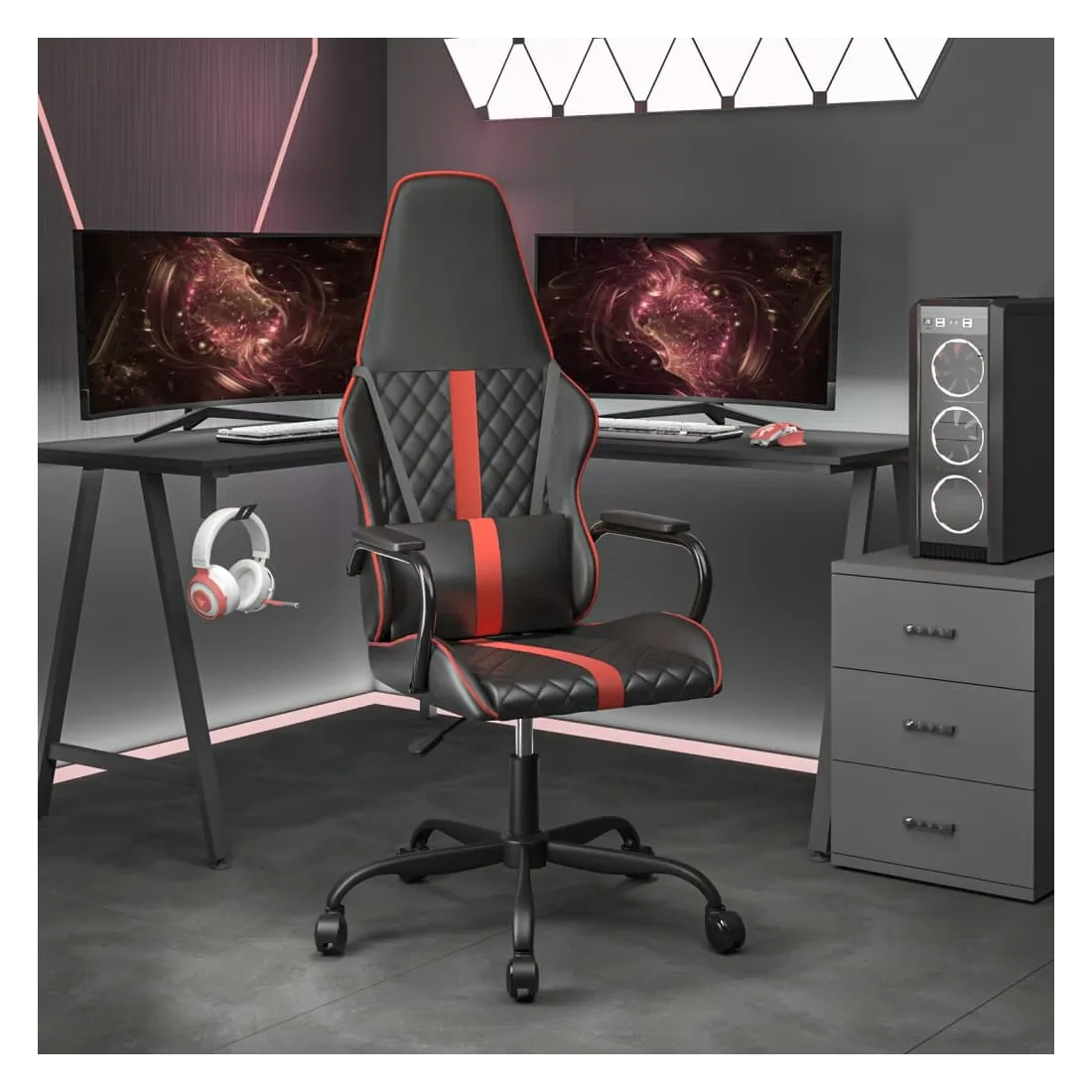 Profitez de cette chaise de jeu unique et améliorez votre expérience de jeu avec confort ! Similicuir durable : le similicuir de qualité supérieure est un matériau très durable. Il est résistant aux taches, ce qui le rend facile à nettoyer avec un chiffon humide. La surface lisse donne également un aspect luxueux et la beauté du cuir véritable.Hauteur réglable : utilisez le levier pour régler la hauteur de votre siège à votre convenance.Design pratique : le design pivotant à 360 degrés permet une plus grande amplitude de mouvement. De plus, il est pratique de le déplacer avec des roulettes.Cadre robuste et stable : les cadres en métal et en contreplaqué assurent robustesse et stabilité. Remarque :Chaque produit est livré avec un manuel de montage dans la boîte pour un montage facile.