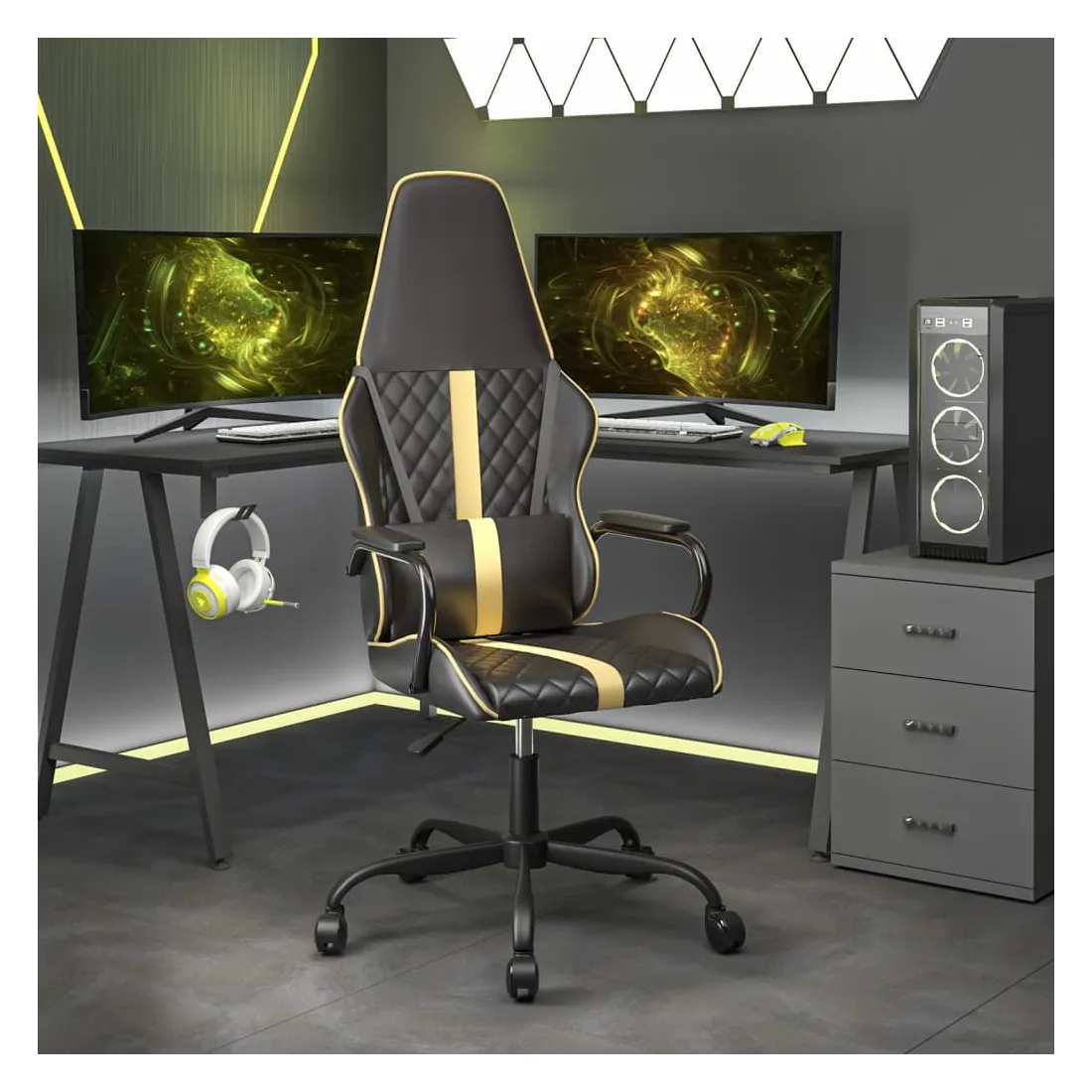 Profitez de cette chaise de jeu unique et améliorez votre expérience de jeu avec confort ! Similicuir durable : le similicuir de qualité supérieure est un matériau très durable. Il est résistant aux taches, ce qui le rend facile à nettoyer avec un chiffon humide. La surface lisse donne également un aspect luxueux et la beauté du cuir véritable.Hauteur réglable : utilisez le levier pour régler la hauteur de votre siège à votre convenance.Design pratique : le design pivotant à 360 degrés permet une plus grande amplitude de mouvement. De plus, il est pratique de le déplacer avec des roulettes.Cadre robuste et stable : les cadres en métal et en contreplaqué assurent robustesse et stabilité. Remarque :Chaque produit est livré avec un manuel de montage dans la boîte pour un montage facile.