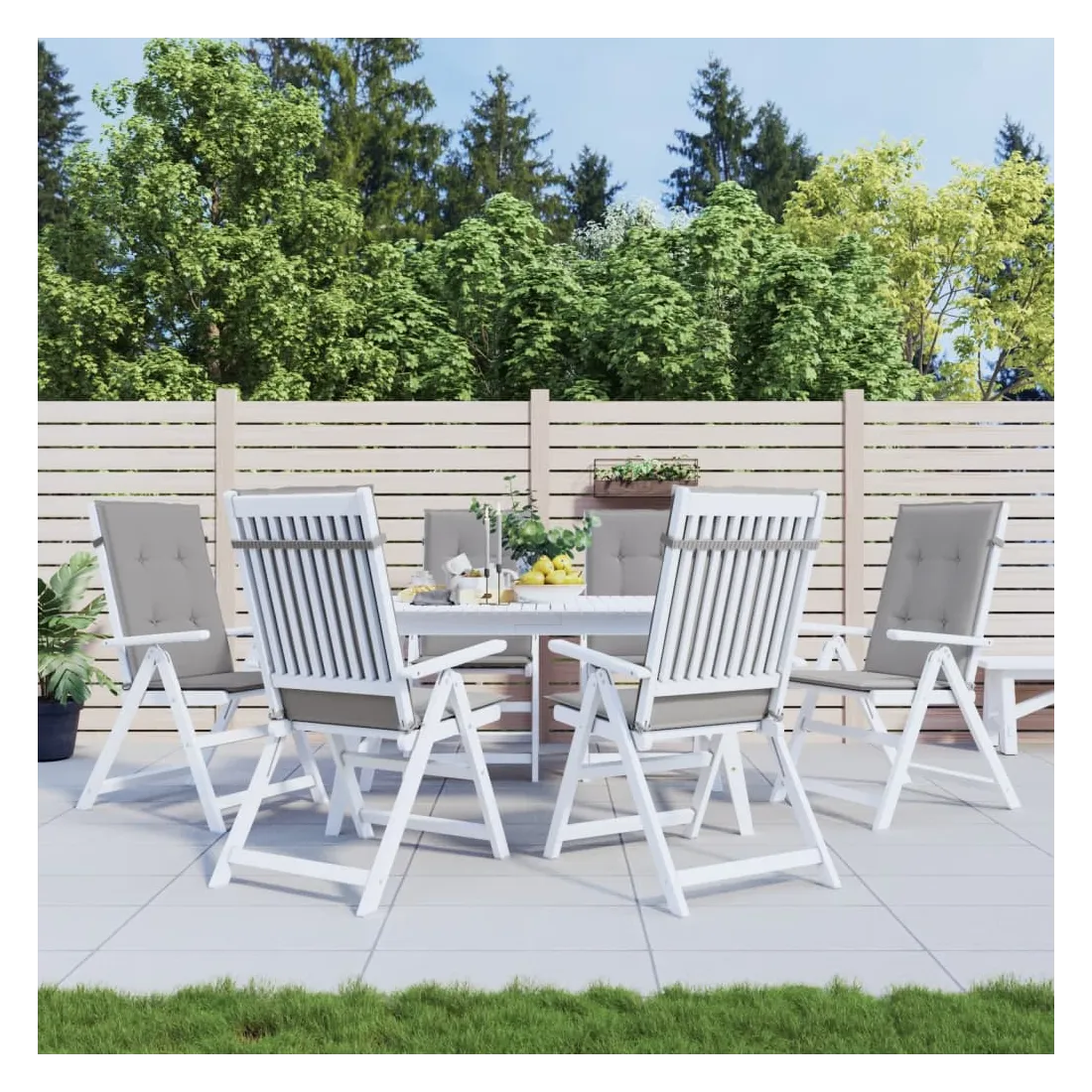 Coussins de chaise de jardin à dossier haut lot de 6 gris tissu