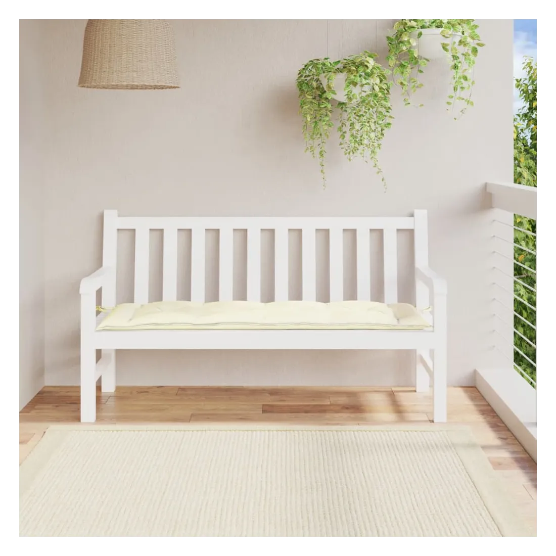 Coussin de banc de jardin blanc crème 150x50x7 cm tissu oxford