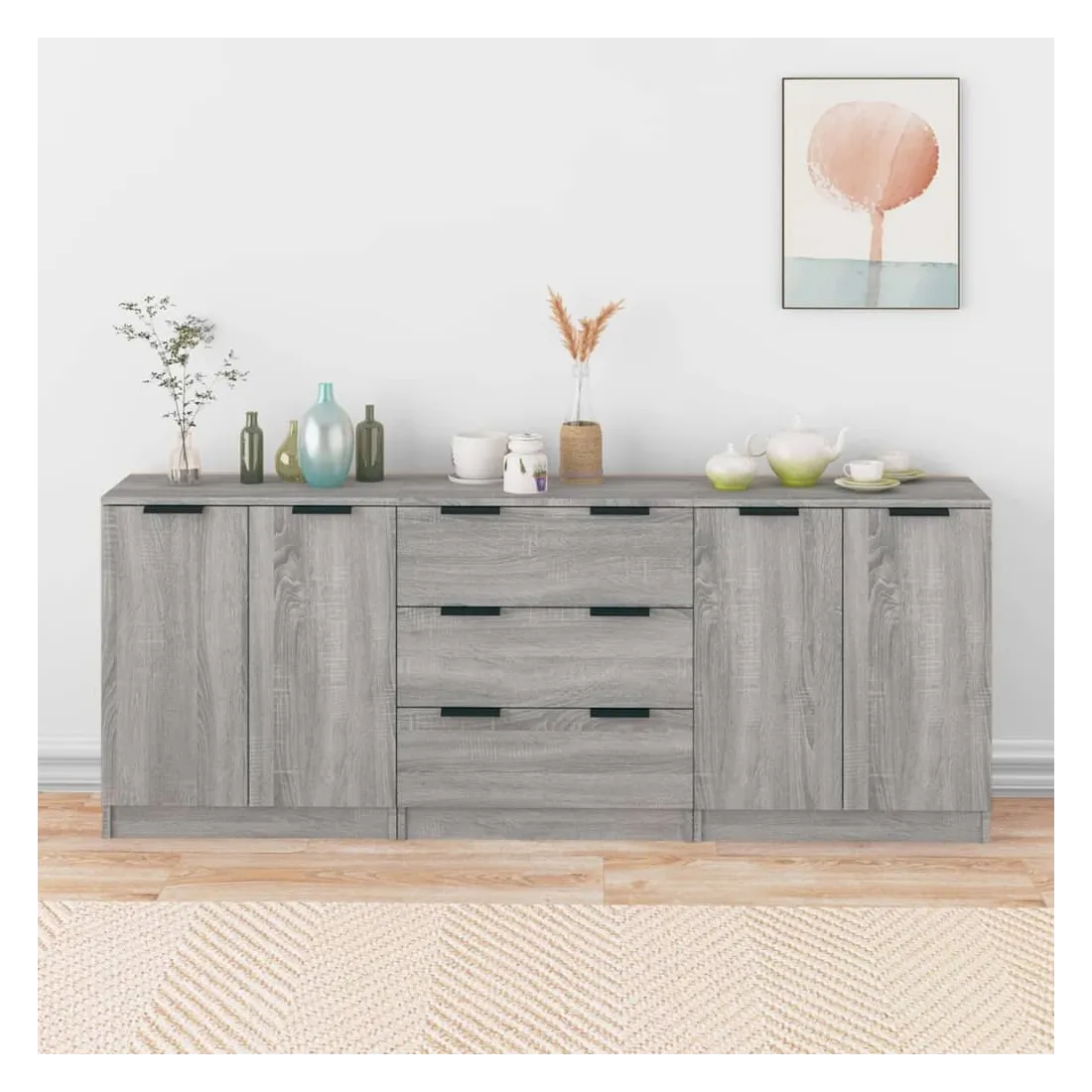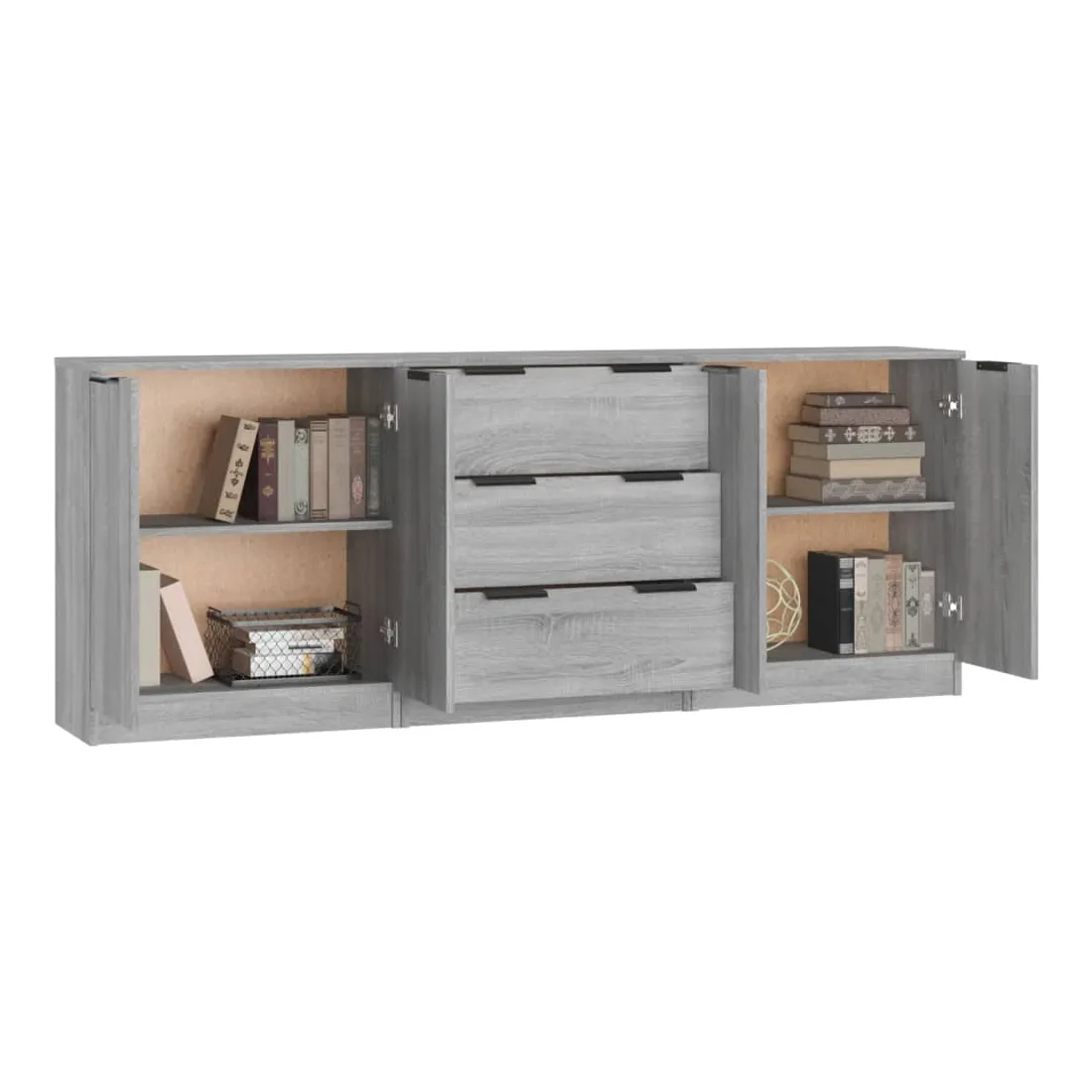 Buffets 3 pcs Sonoma gris Bois d'ingénierie