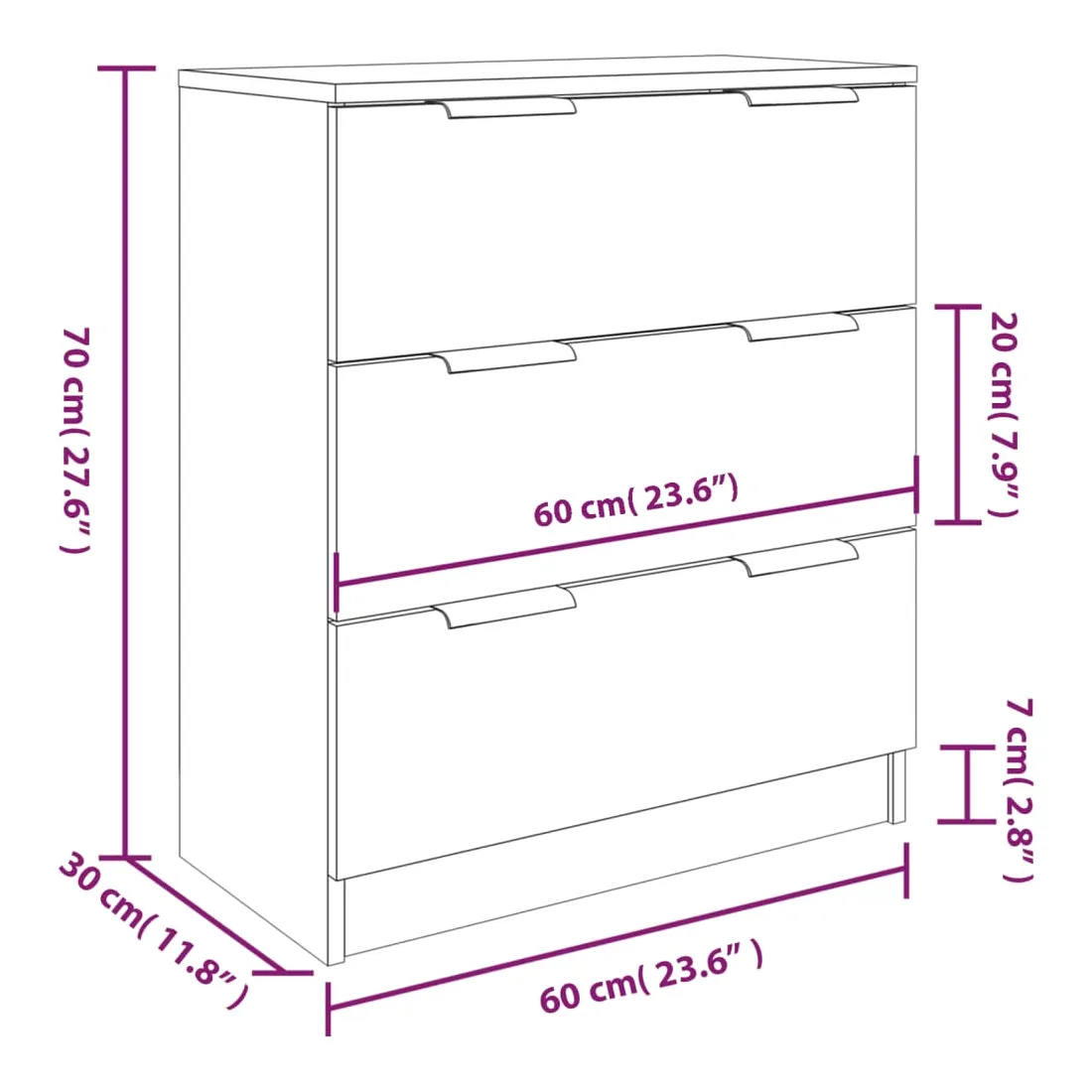 • Dimensions (chacun) : 60 x 30 x 70 cm (l x P x H)