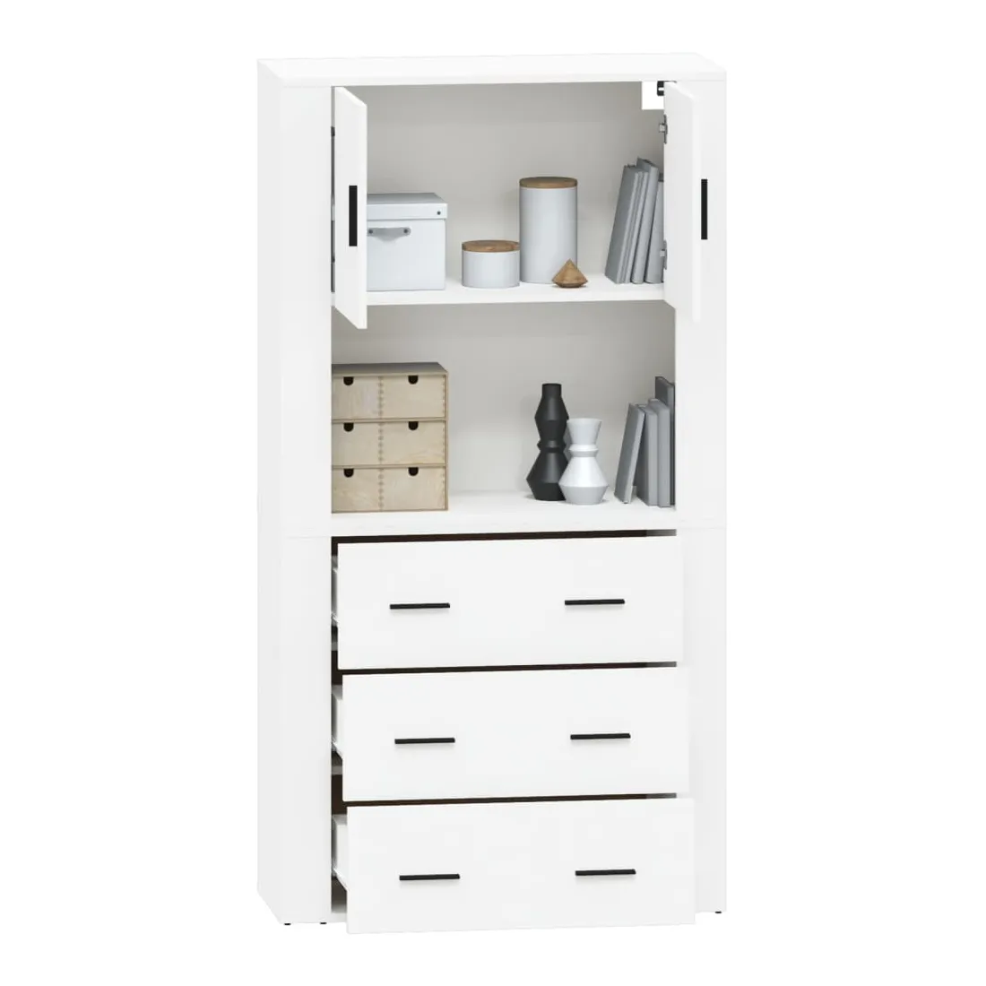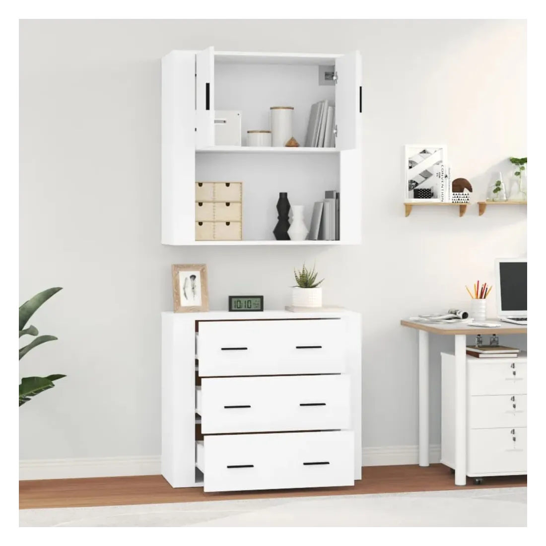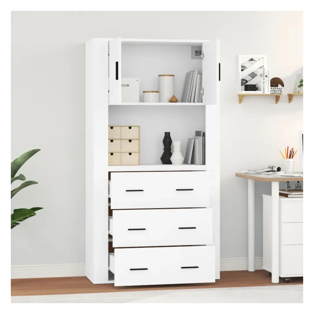 Cherchez-vous un buffet haut de gamme stylé ? Ce buffet haut ajoute un charme unique à votre intérieur existant ! Matériau durable : le bois d'ingénierie est d'une qualité exceptionnelle avec une surface lisse et présente également résistance, stabilité et résistance à l'humidité.Grand espace de rangement : le buffet offre un grand espace de rangement pour garder vos différents articles essentiels quotidiens bien organisés et facilement accessibles.Fonction murale : le meuble de rangement peut être fixé au mur sur le dessus du buffet pour créer un buffet haut, ce qui permet de gagner de l'espace au sol. Ainsi, vous pouvez maximiser votre espace de vie et garder la zone propre et bien rangée. Bon à savoir :Pour faciliter au maximum le montage, chaque produit est livré avec des instructions.Les vis et les chevilles pour l'intérieur du mur ne sont pas incluses. Nous vous conseillons de trouver et d'utiliser des vis et des chevilles adaptées spécifiquement à vos murs. Si vous n'êtes pas sûr, vous pouvez consulter un professionnel. Veuillez lire et suivre chaque étape des instructions. Attention :Pour éviter qu'il ne soit renversé, ce produit doit être utilisé avec le dispositif de fixation au mur fourni.