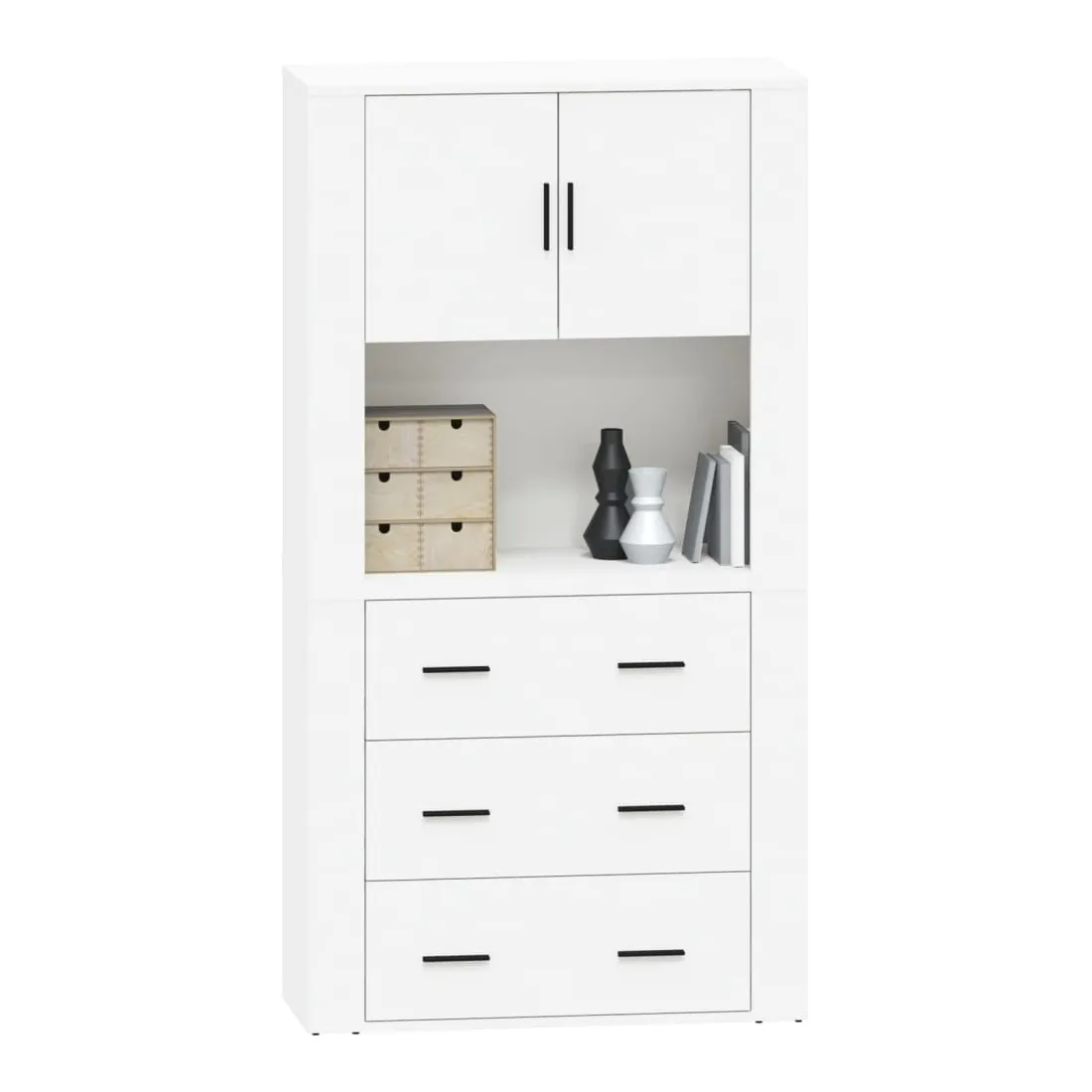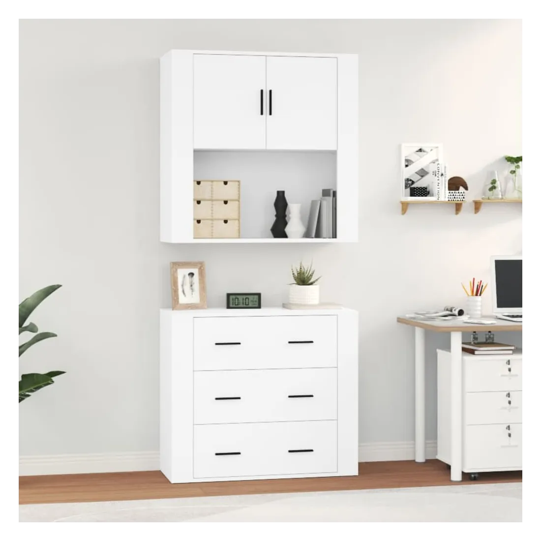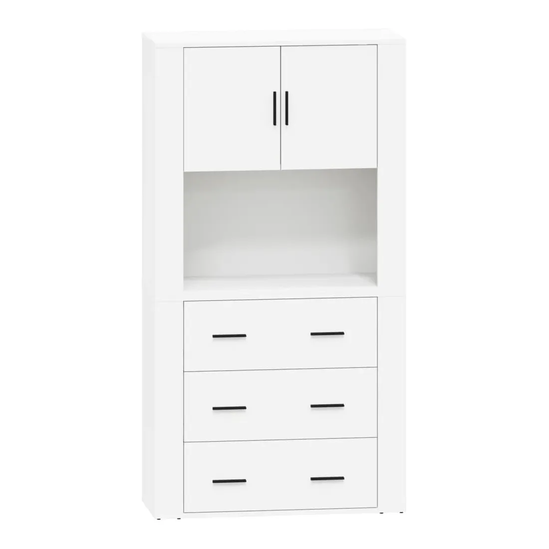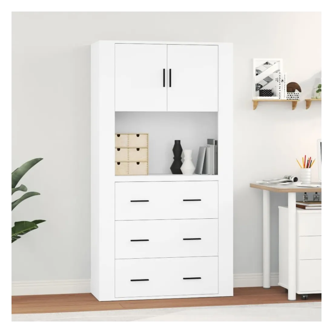 Cherchez-vous un buffet haut de gamme stylé ? Ce buffet haut ajoute un charme unique à votre intérieur existant ! Matériau durable : le bois d'ingénierie est d'une qualité exceptionnelle avec une surface lisse et présente également résistance, stabilité et résistance à l'humidité.Grand espace de rangement : le buffet offre un grand espace de rangement pour garder vos différents articles essentiels quotidiens bien organisés et facilement accessibles.Fonction murale : le meuble de rangement peut être fixé au mur sur le dessus du buffet pour créer un buffet haut, ce qui permet de gagner de l'espace au sol. Ainsi, vous pouvez maximiser votre espace de vie et garder la zone propre et bien rangée. Bon à savoir :Pour faciliter au maximum le montage, chaque produit est livré avec des instructions.Les vis et les chevilles pour l'intérieur du mur ne sont pas incluses. Nous vous conseillons de trouver et d'utiliser des vis et des chevilles adaptées spécifiquement à vos murs. Si vous n'êtes pas sûr, vous pouvez consulter un professionnel. Veuillez lire et suivre chaque étape des instructions. Attention :Pour éviter qu'il ne soit renversé, ce produit doit être utilisé avec le dispositif de fixation au mur fourni.