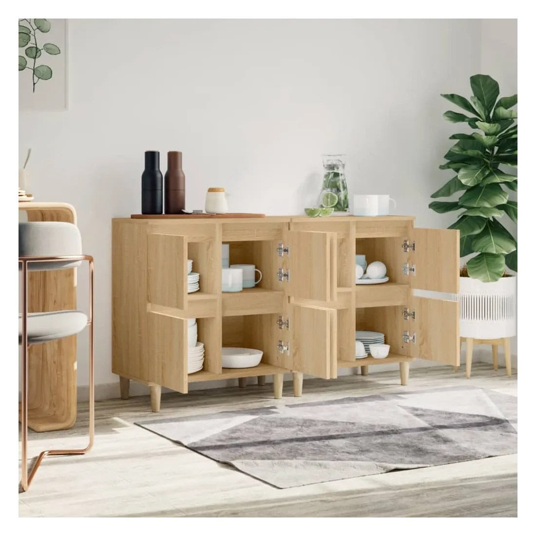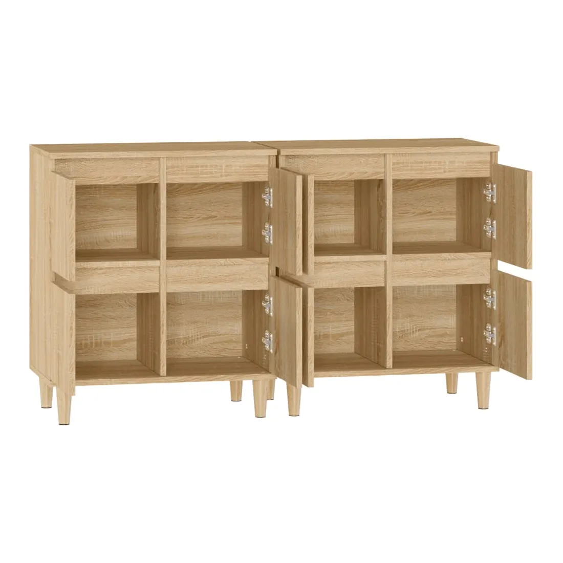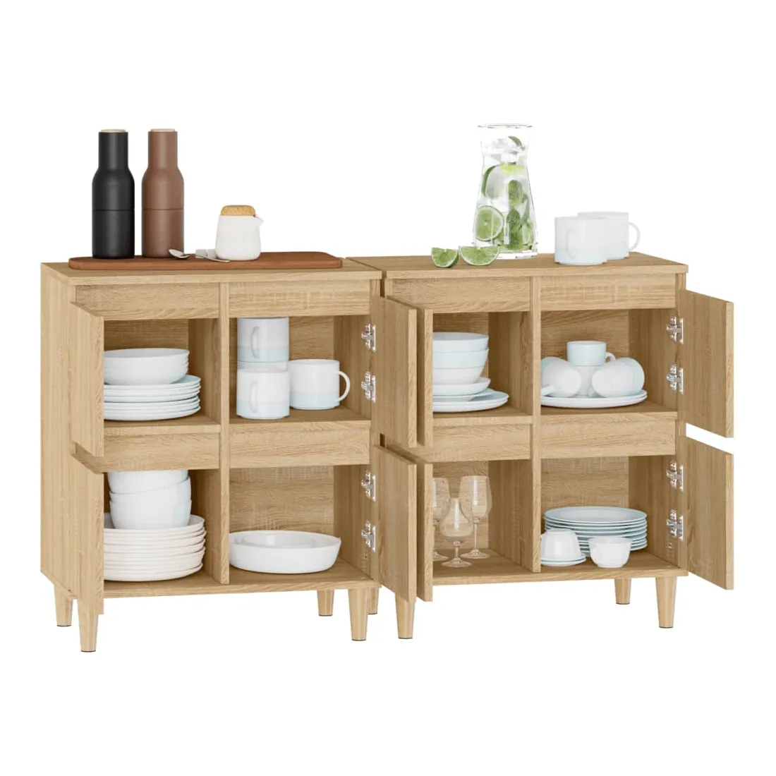 Ces buffets classiques, au look intemporel, sont conçus pour être un excellent supplément à votre maison. Matériau durable : le bois d'ingénierie est d'une qualité exceptionnelle avec une surface lisse et présente également résistance, stabilité et résistance à l'humidité. Fabriquée en bois d'ingénierie, l'armoire est facile à nettoyer avec un chiffon humide.Grand espace de rangement : équipé de 4 compartiments, le meuble buffet offre un grand espace de rangement pour garder vos différents articles essentiels quotidiens bien organisés et facilement accessibles.Fonction d'affichage : le dessus du placard est idéal pour exposer vos objets décoratifs, albums photo ou petites plantes. Attention :Pour éviter qu'il ne soit renversé, ce produit doit être utilisé avec le dispositif de fixation au mur fourni.