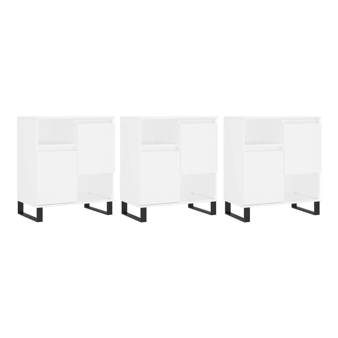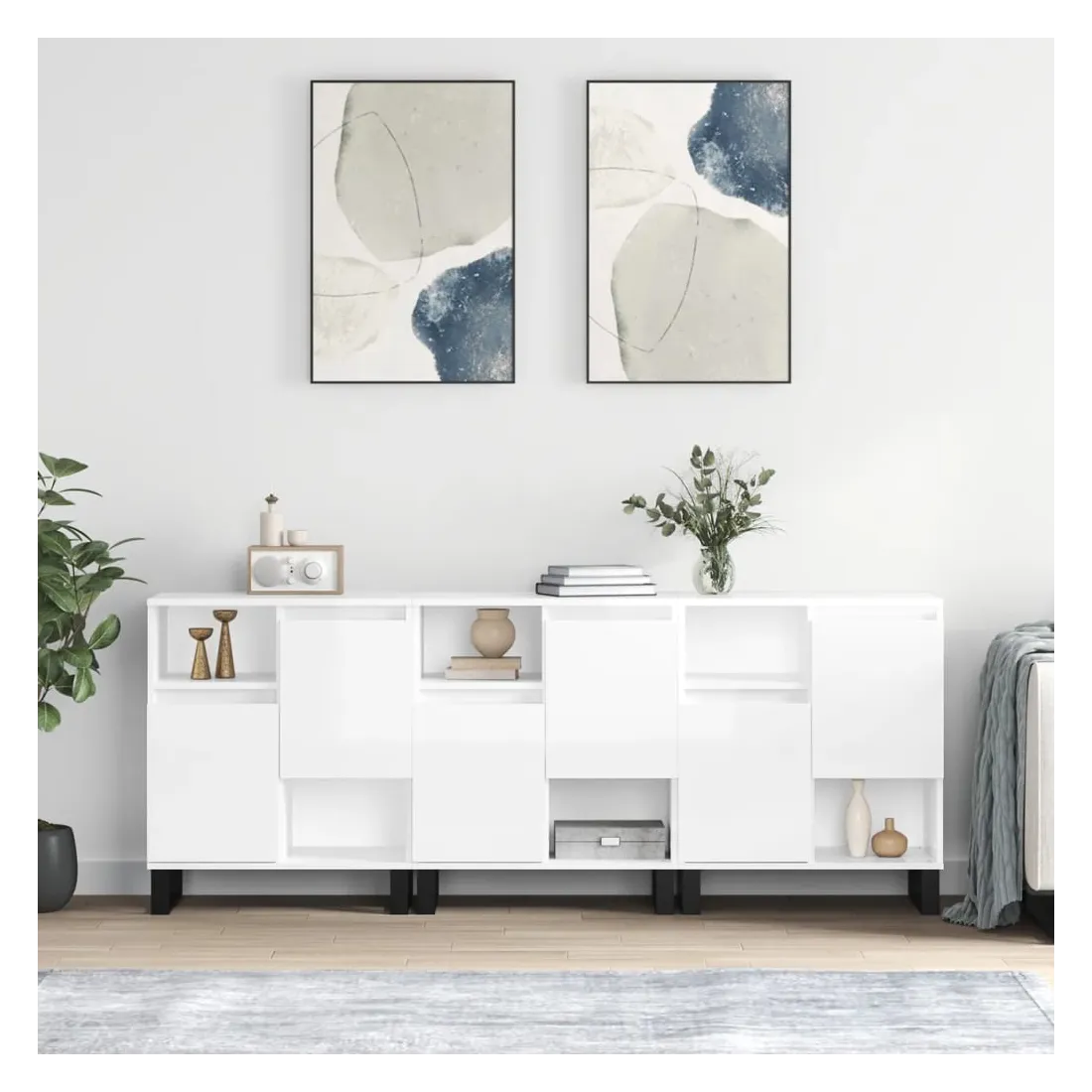 Buffets 3 pcs blanc brillant bois d'ingénierie