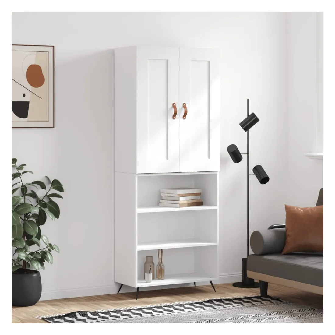 Cherchez-vous un buffet haut de gamme stylé ? Ce buffet haut ajoute un charme élégant à votre intérieur existant ! Matériau durable : le bois d'ingénierie est d'une qualité exceptionnelle avec une surface lisse et présente également résistance, stabilité et résistance à l'humidité.Grand espace de rangement : l'armoire offre un grand espace de rangement pour garder vos différents articles essentiels quotidiens bien organisés et facilement accessibles.Portes pratiques : gardez votre espace sans encombrement en cachant de petits articles essentiels derrière les portes de l'armoire de rangement.Pieds en métal : les pieds en métal ajoutent un style calme à votre intérieur tout en assurant la stabilité. Attention :Pour éviter qu'il ne soit renversé, ce produit doit être utilisé avec le dispositif de fixation au mur fourni. Bon à savoir :Les vis et les chevilles pour l'intérieur du mur ne sont pas incluses. Nous vous conseillons de trouver et d'utiliser des vis et des chevilles adaptées spécifiquement à vos murs. Si vous n'êtes pas sûr, vous pouvez consulter un professionnel. Veuillez lire et suivre chaque étape des instructions.