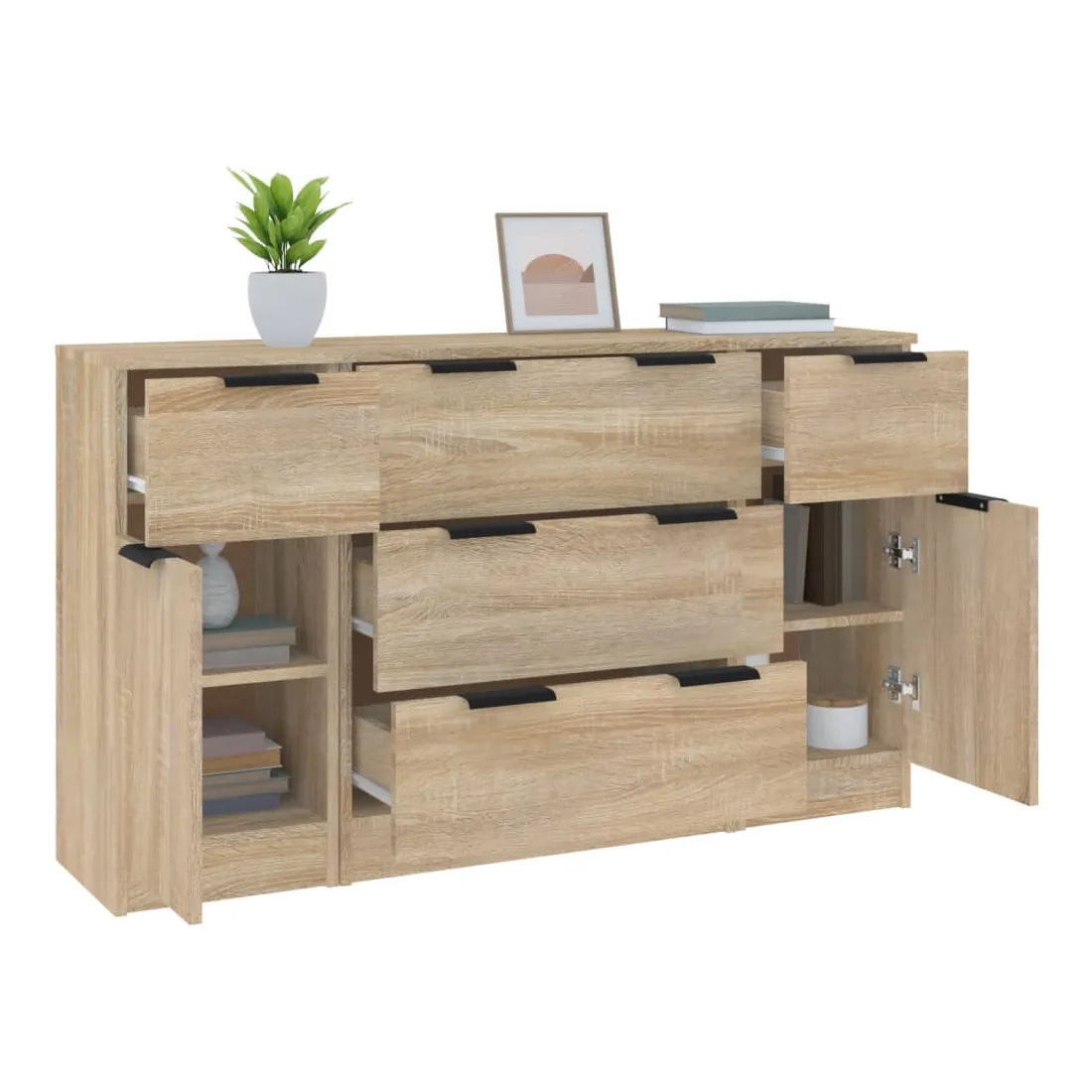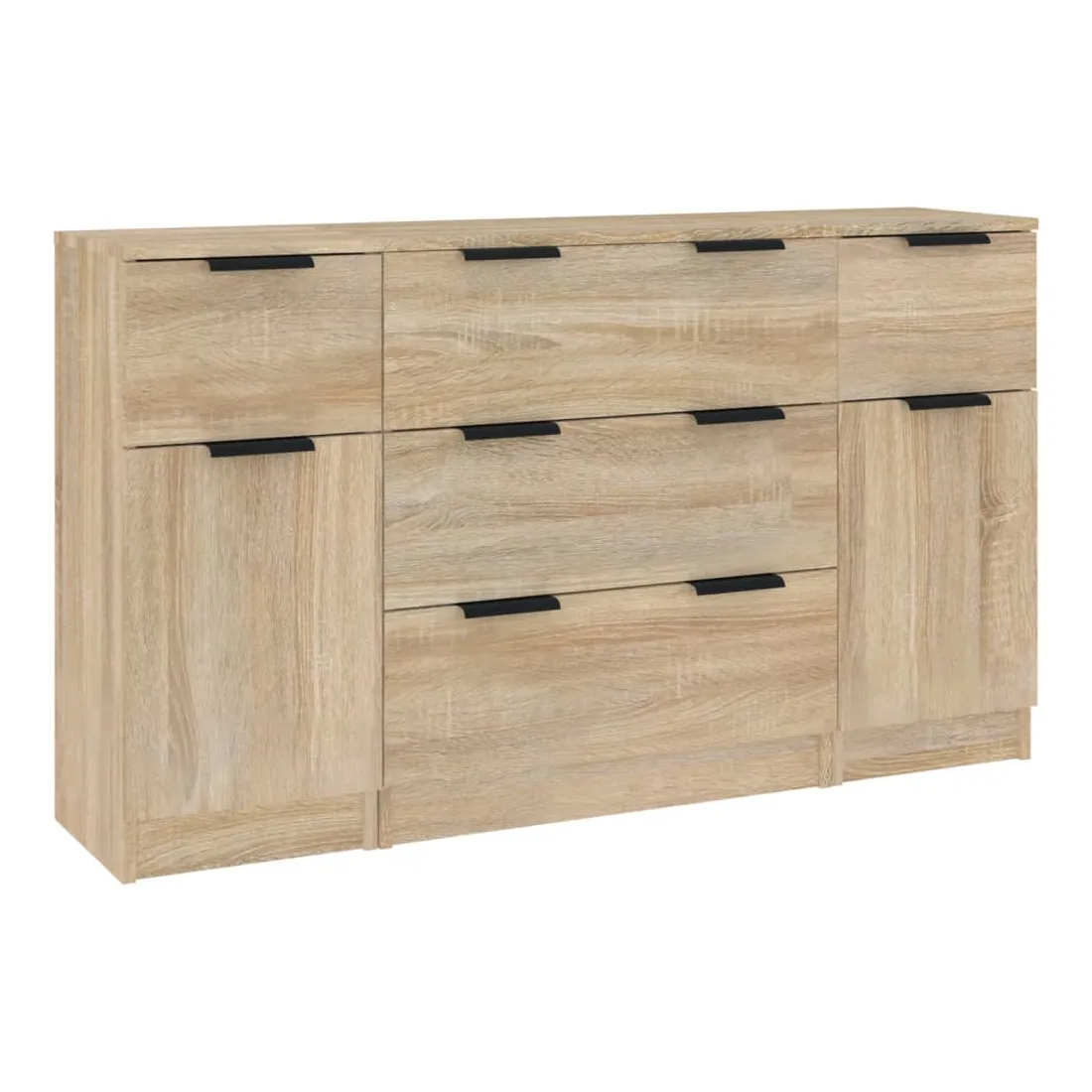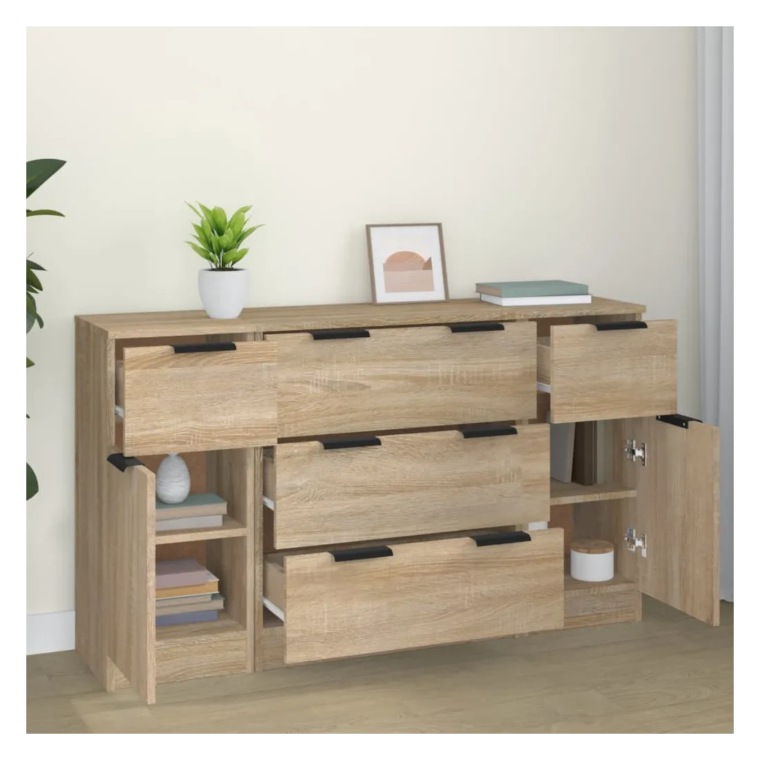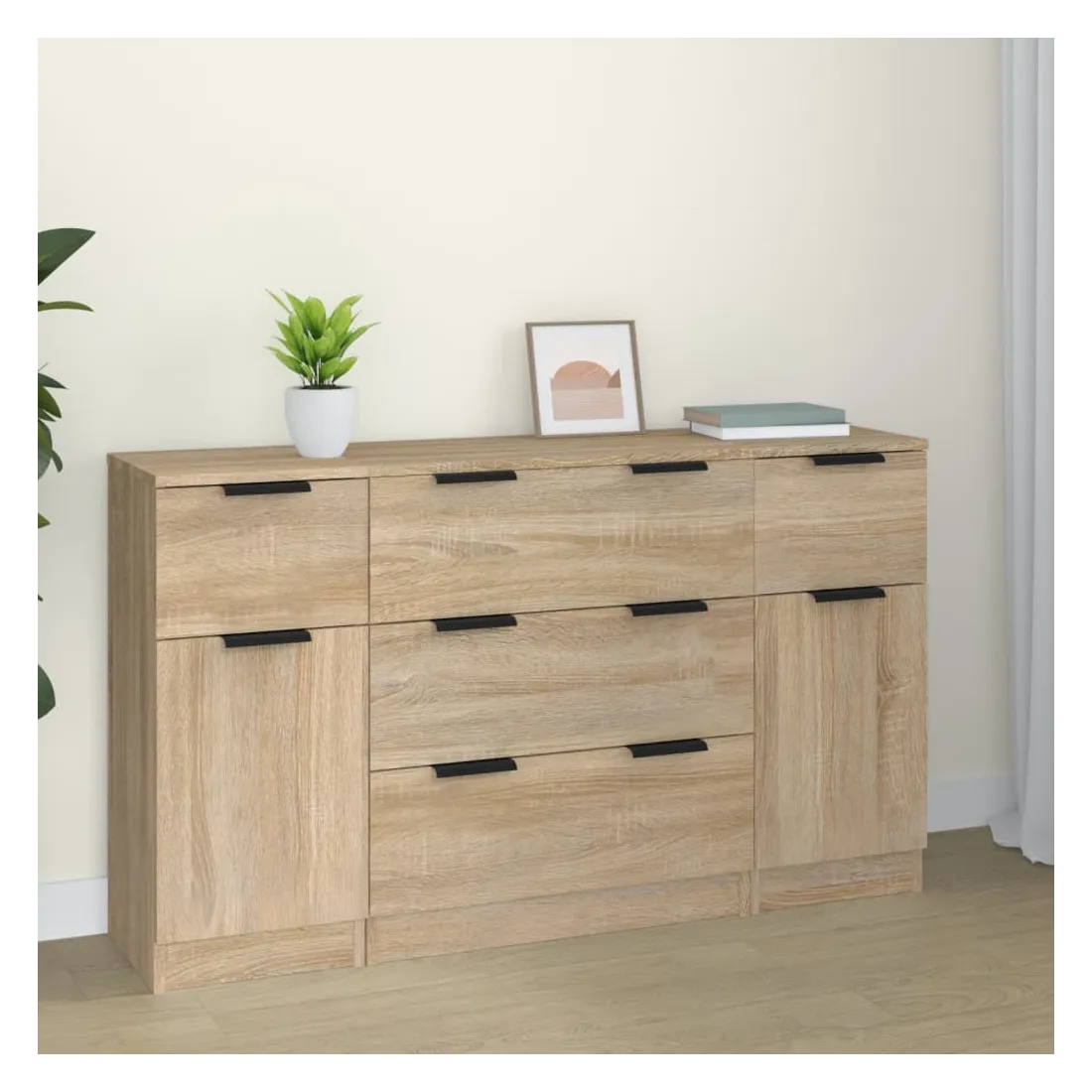 Dotés d'un charme minimaliste, ces buffets sont destinés à satisfaire vos différentes exigences et à compléter idéalement votre pièce. Matériau facile à nettoyer : fabriqués en bois d'ingénierie, les buffets sont faciles à nettoyer. Le bois d'ingénierie est d'une qualité exceptionnelle avec une surface lisse et présente également résistance, stabilité et résistance à l'humidité.Grand espace de rangement : les buffets offrent un grand espace de rangement, ce qui permet de bien organiser les choses.Design tendance : les buffets chics présentent des lignes épurées et un look minimaliste qui ajoutent une touche moderne à votre décor existant. Remarque :Chaque produit est livré avec un manuel de montage dans la boîte pour un montage facile. Attention :Afin d'éviter le basculement, ces produits doivent être utilisés avec le dispositif de fixation murale fourni.