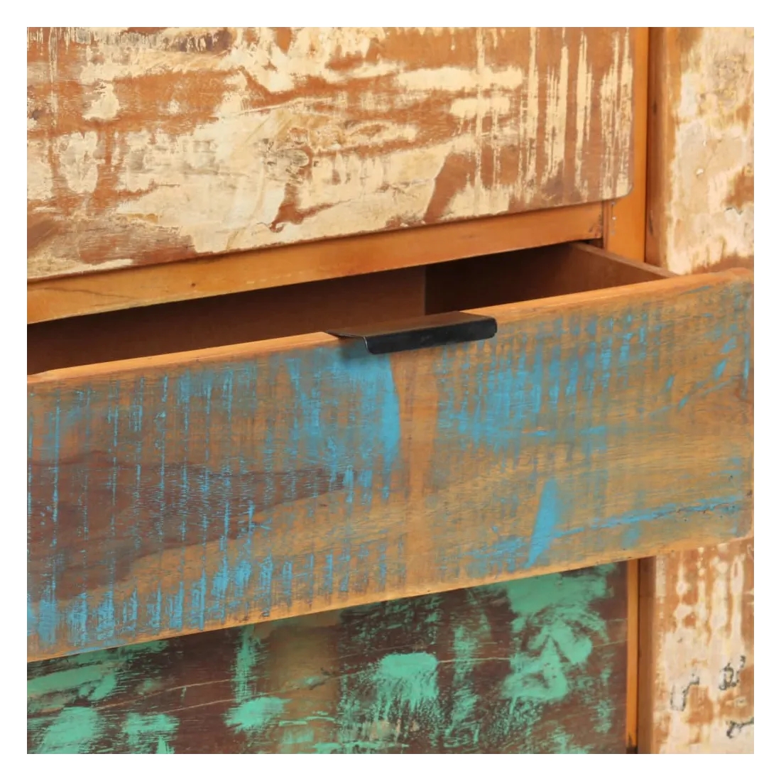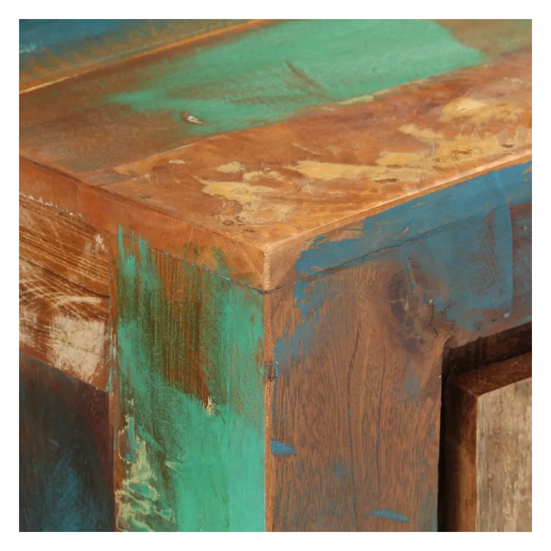 - Matériau : bois de récupération massif avec une finition de couleur mixte