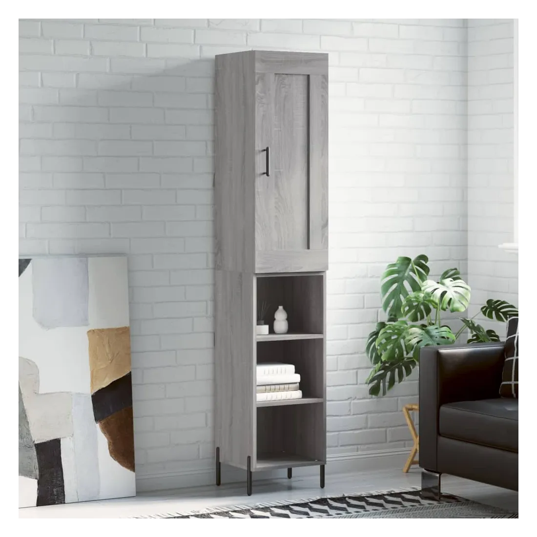 Cherchez-vous un buffet haut de gamme stylé ? Ce buffet haut ajoute un charme élégant à votre intérieur existant ! Matériau durable : le bois d'ingénierie est d'une qualité exceptionnelle avec une surface lisse et se caractérise par sa solidité, stabilité et résistance à l'humidité. Fabriquée en bois d'ingénierie, l'armoire est robuste et durable.Grand espace de rangement : l'armoire latérale offre un grand espace de rangement pour garder vos différents articles essentiels quotidiens bien organisés et facilement accessibles.Porte pratique : gardez votre espace sans encombrement en cachant de petits objets essentiels derrière la porte de l'armoire haute.Pieds en métal : les pieds en métal ajoutent un style calme à votre intérieur tout en assurant la stabilité. Attention :Pour éviter qu'il ne soit renversé, ce produit doit être utilisé avec le dispositif de fixation au mur fourni. Bon à savoir :Les vis et les chevilles pour l'intérieur du mur ne sont pas incluses. Nous vous conseillons de trouver et d'utiliser des vis et des chevilles adaptées spécifiquement à vos murs. Si vous n'êtes pas sûr, vous pouvez consulter un professionnel. Veuillez lire et suivre chaque étape des instructions.