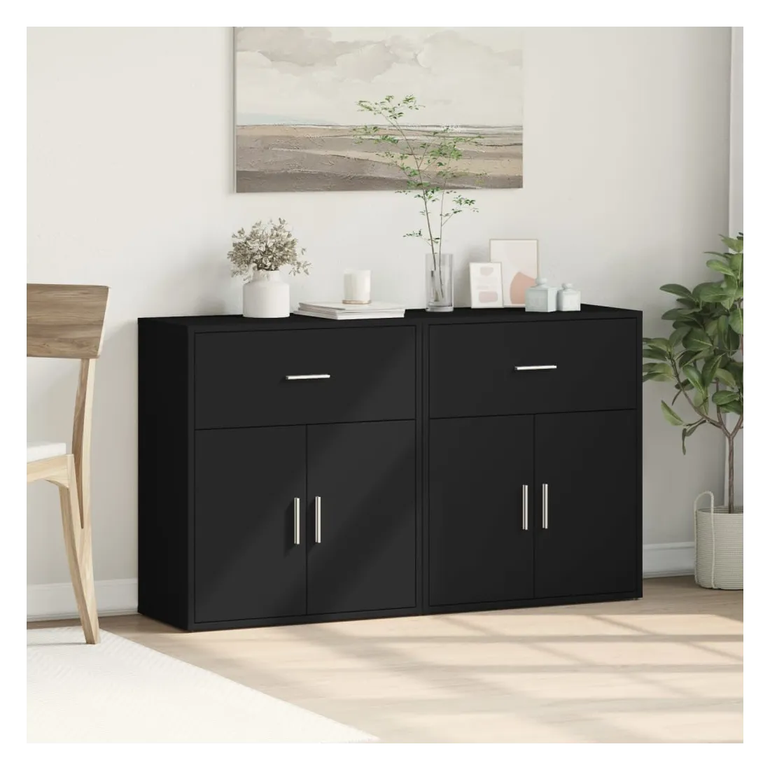 Buffets 2 pcs noir 60x31x70 cm bois d'ingénierie