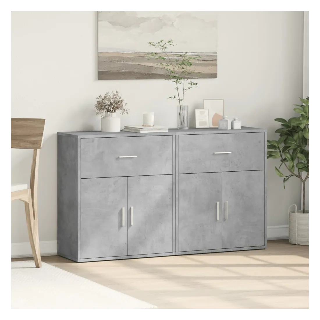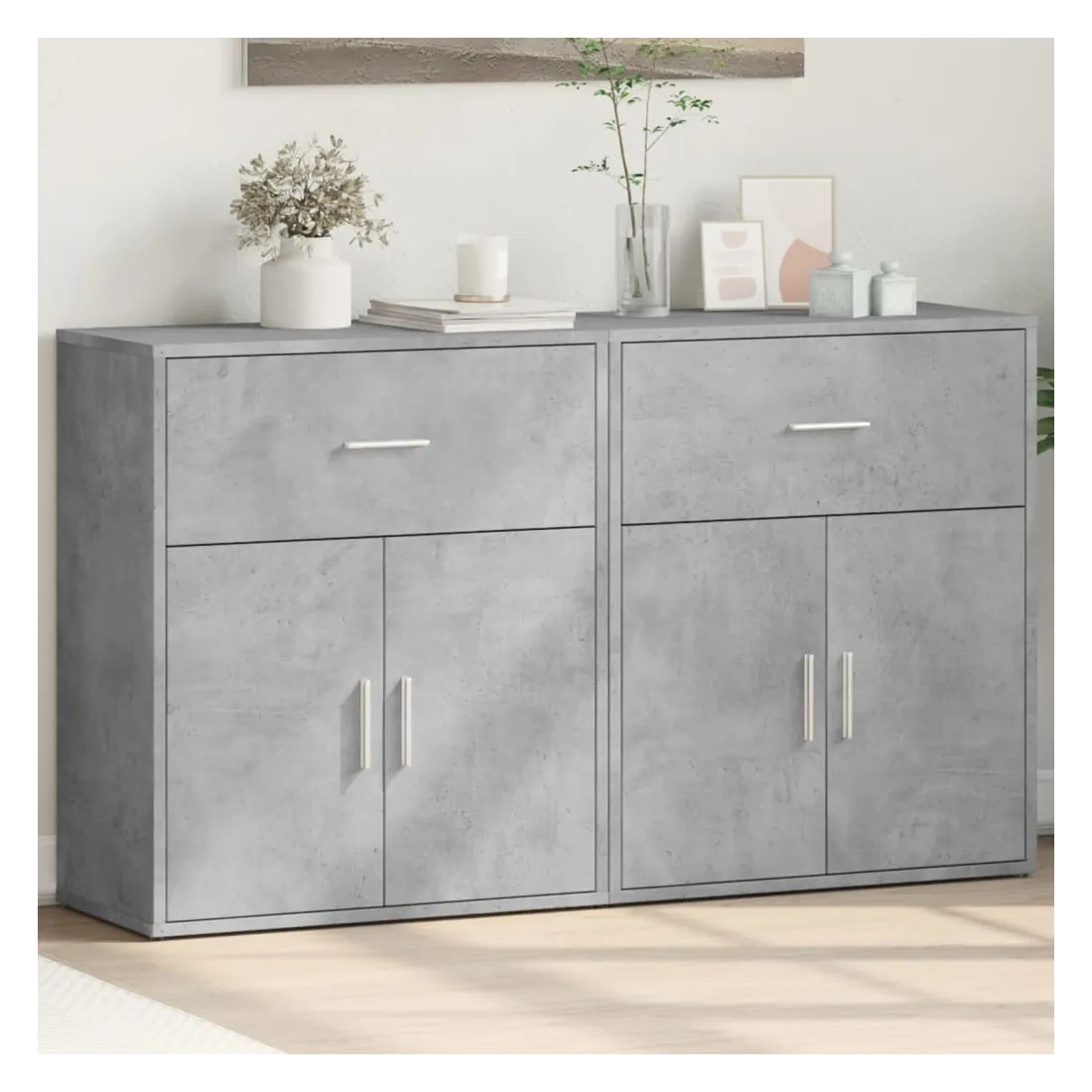 Ces buffets robustes sont conçus pour être un point de mire de votre pièce avec un design tendance mais pratique. Matériau durable : le bois d'ingénierie est d'une qualité exceptionnelle avec une surface lisse et présente également résistance, stabilité et résistance à l'humidité. Fabriquée en bois d'ingénierie, le meuble de rangement est facile à nettoyer avec un chiffon humide.Grand espace de rangement : ce buffet offre un espace de rangement pratique pour garder vos magazines, livres, télécommandes et autres petits objets bien organisés et à portée de main.Large application : le dessus de ce buffet offre plus d'espace pour placer des objets, adapté aux téléphones portables, livres, lampes, etc. Attention :Pour éviter qu'il ne bascule, ce produit doit être utilisé avec le dispositif de fixation murale (non fourni).