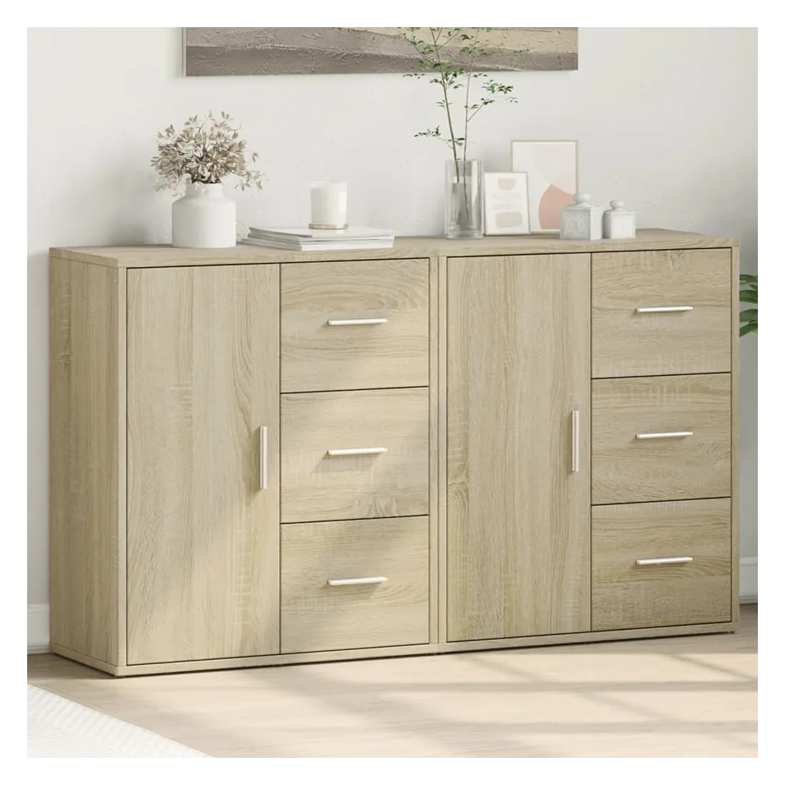 Ces buffets robustes sont conçus pour être un point de mire de votre pièce avec un design tendance mais pratique. Matériau durable : le bois d'ingénierie est d'une qualité exceptionnelle avec une surface lisse et présente également résistance, stabilité et résistance à l'humidité. Fabriquée en bois d'ingénierie, le meuble de rangement est facile à nettoyer avec un chiffon humide.Grand espace de rangement : ce buffet offre un espace de rangement pratique pour garder vos magazines, livres, télécommandes et autres petits objets bien organisés et à portée de main.Large application : le dessus de ce buffet offre plus d'espace pour placer des objets, adapté aux téléphones portables, livres, lampes, etc. Attention :Pour éviter qu'il ne bascule, ce produit doit être utilisé avec le dispositif de fixation murale (non fourni).