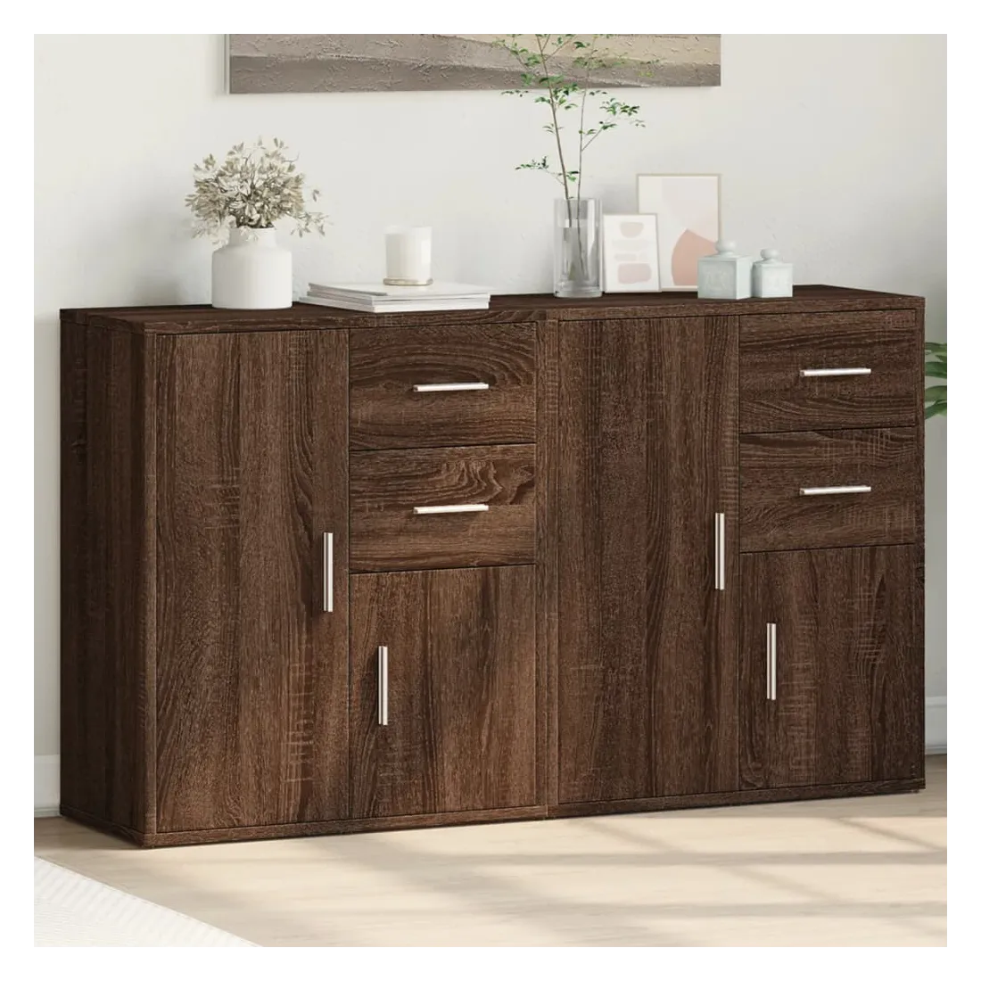 Ces buffets robustes sont conçus pour être un point de mire de votre pièce avec un design tendance mais pratique. Matériau durable : le bois d'ingénierie est d'une qualité exceptionnelle avec une surface lisse et présente également résistance, stabilité et résistance à l'humidité. Fabriquée en bois d'ingénierie, le meuble de rangement est facile à nettoyer avec un chiffon humide.Grand espace de rangement : ce buffet offre un espace de rangement pratique pour garder vos magazines, livres, télécommandes et autres petits objets bien organisés et à portée de main.Large application : le dessus de ce buffet offre plus d'espace pour placer des objets, adapté aux téléphones portables, livres, lampes, etc. Attention :Pour éviter qu'il ne bascule, ce produit doit être utilisé avec le dispositif de fixation murale (non fourni).