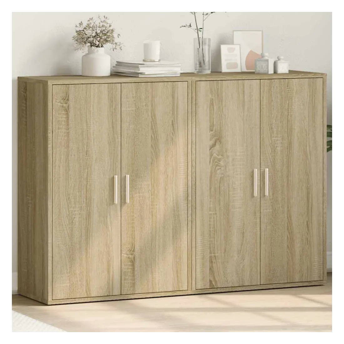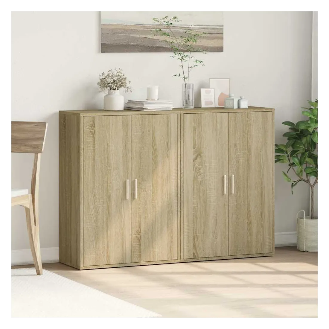 Ces buffets robustes sont conçus pour être un point de mire de votre pièce avec un design tendance mais pratique. Matériau durable : le bois d'ingénierie est d'une qualité exceptionnelle avec une surface lisse et présente également résistance, stabilité et résistance à l'humidité. Fabriquée en bois d'ingénierie, le meuble de rangement est facile à nettoyer avec un chiffon humide.Grand espace de rangement : ce buffet offre un espace de rangement pratique pour garder vos magazines, livres, télécommandes et autres petits objets bien organisés et à portée de main.Large application : le dessus de ce buffet offre plus d'espace pour placer des objets, adapté aux téléphones portables, livres, lampes, etc. Attention :Pour éviter qu'il ne bascule, ce produit doit être utilisé avec le dispositif de fixation murale (non fourni).