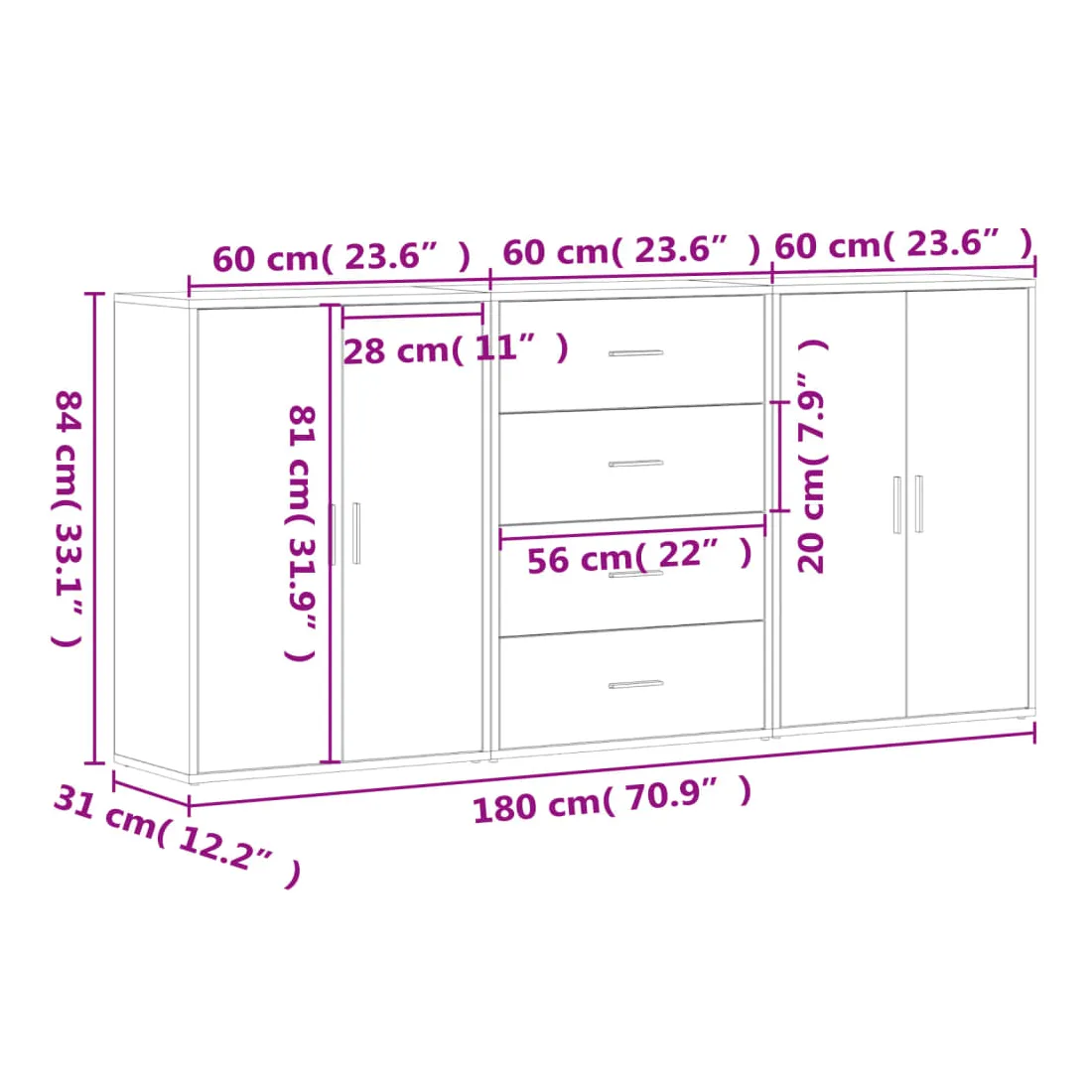 Ces buffets robustes sont conçus pour être un point de mire de votre pièce avec un design tendance mais pratique. Matériau durable : le bois d'ingénierie est d'une qualité exceptionnelle avec une surface lisse et présente également résistance, stabilité et résistance à l'humidité. Fabriquée en bois d'ingénierie, le meuble de rangement est facile à nettoyer avec un chiffon humide.Grand espace de rangement : ce buffet offre un espace de rangement pratique pour garder vos magazines, livres, télécommandes et autres petits objets bien organisés et à portée de main.Large application : le dessus de ce buffet offre plus d'espace pour placer des objets, adapté aux téléphones portables, livres, lampes, etc. Attention :Pour éviter qu'il ne bascule, ce produit doit être utilisé avec le dispositif de fixation murale (non fourni).