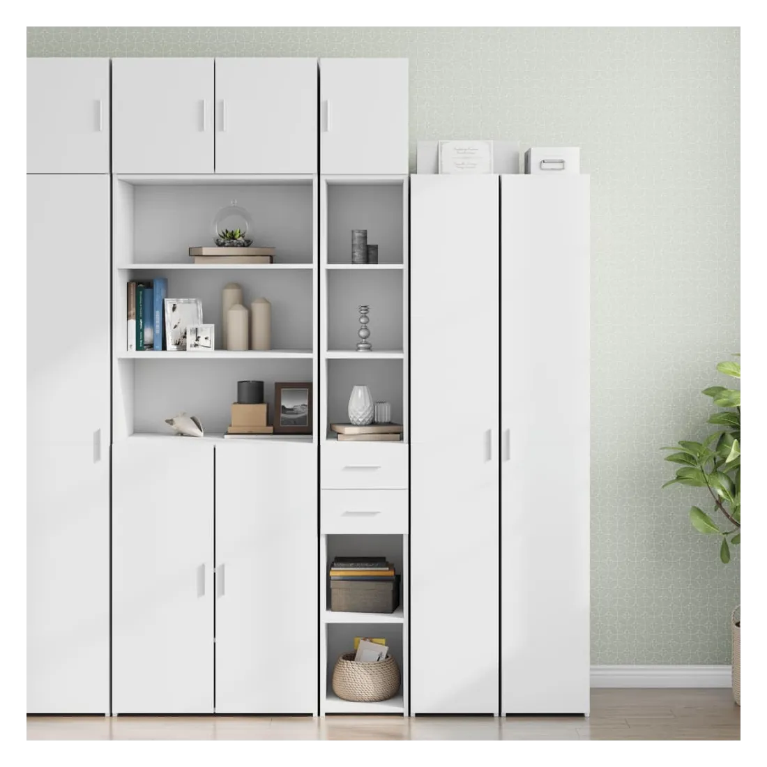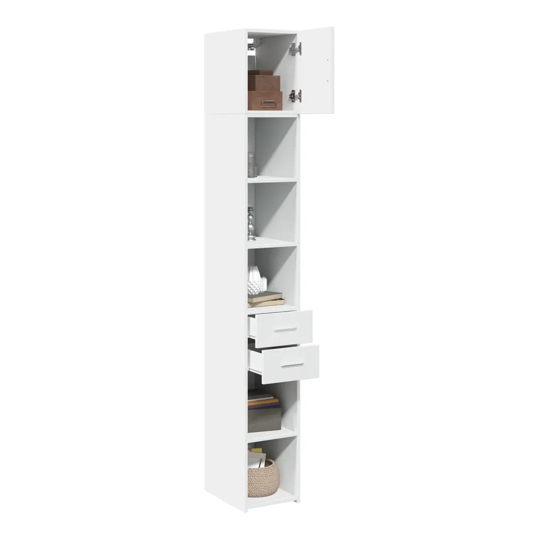 Cette armoire de rangement mince comprend deux armoires de tailles différentes, offrant un espace de rangement supplémentaire pour votre maison. Matériau stable et durable : le bois d'ingénierie est un matériau durable et stable dont la surface lisse résiste à l'humidité, au déformation et au fendillement, ce qui en fait un choix fiable pour une grande variété de projets.Grand espace de rangement : cette armoire de rangement est conçue avec plusieurs compartiments, offrant un grand espace de rangement pour les livres, les objets de collection, les décorations ou d’autres objets que vous devez ranger.Deux méthodes d’installation de la porte : vous pouvez installer la porte au côté droit ou gauche en fonction de vos besoins spécifiques.Économie d’espace : cette unité de rangement haute utilise efficacement l’espace vertical pour maximiser la capacité de stockage, ce qui en fait un meuble idéal pour les petits espaces ou les espaces limités.Large application : cette armoire de rangement polyvalente est un supplément fonctionnel pour plusieurs espaces, y compris la salle de bain, le salon, la chambre à coucher, la cuisine, la buanderie, le bureau et le garage. Attention :Pour éviter qu'il ne bascule, ce produit doit être utilisé avec le dispositif de fixation murale fourni. Bon à savoir :Les vis et les chevilles pour l'intérieur du mur ne sont pas incluses. Nous vous conseillons de trouver et d'utiliser des vis et des chevilles adaptées spécifiquement à vos murs. Si vous n'êtes pas sûr, vous pouvez consulter un professionnel. Veuillez lire et suivre chaque étape des instructions.