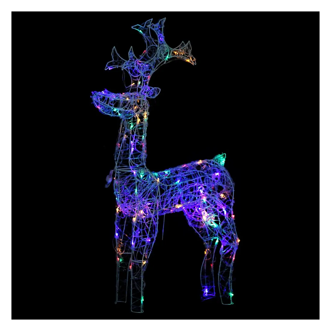 Créez un spectacle étonnant dans votre jardin ou votre maison ce Noël avec ces magnifiques décorations en forme de rennes sur pied, illuminées par des LED colorées ! Matériau résistant aux intempéries : ces rennes éclairés sont fabriqués en acrylique, et ils peuvent résister à l'humidité et à la pluie. Ils peuvent également être facilement nettoyés avec un chiffon humide si nécessaire. LED à économie d'énergie : ces rennes lumineux sont pré-éclairés avec 90 LED, qui sont économes en énergie et durables. Magnifique effet lumineux : ces décorations de Noël sont conçues avec un effet lumineux, qui s'allume magnifiquement et crée une ambiance de vacances magique. Remarque : Le connecteur USB inclus n'est pas étanche, cette partie doit donc éviter l'eau, mais grâce au câble d'extension, la