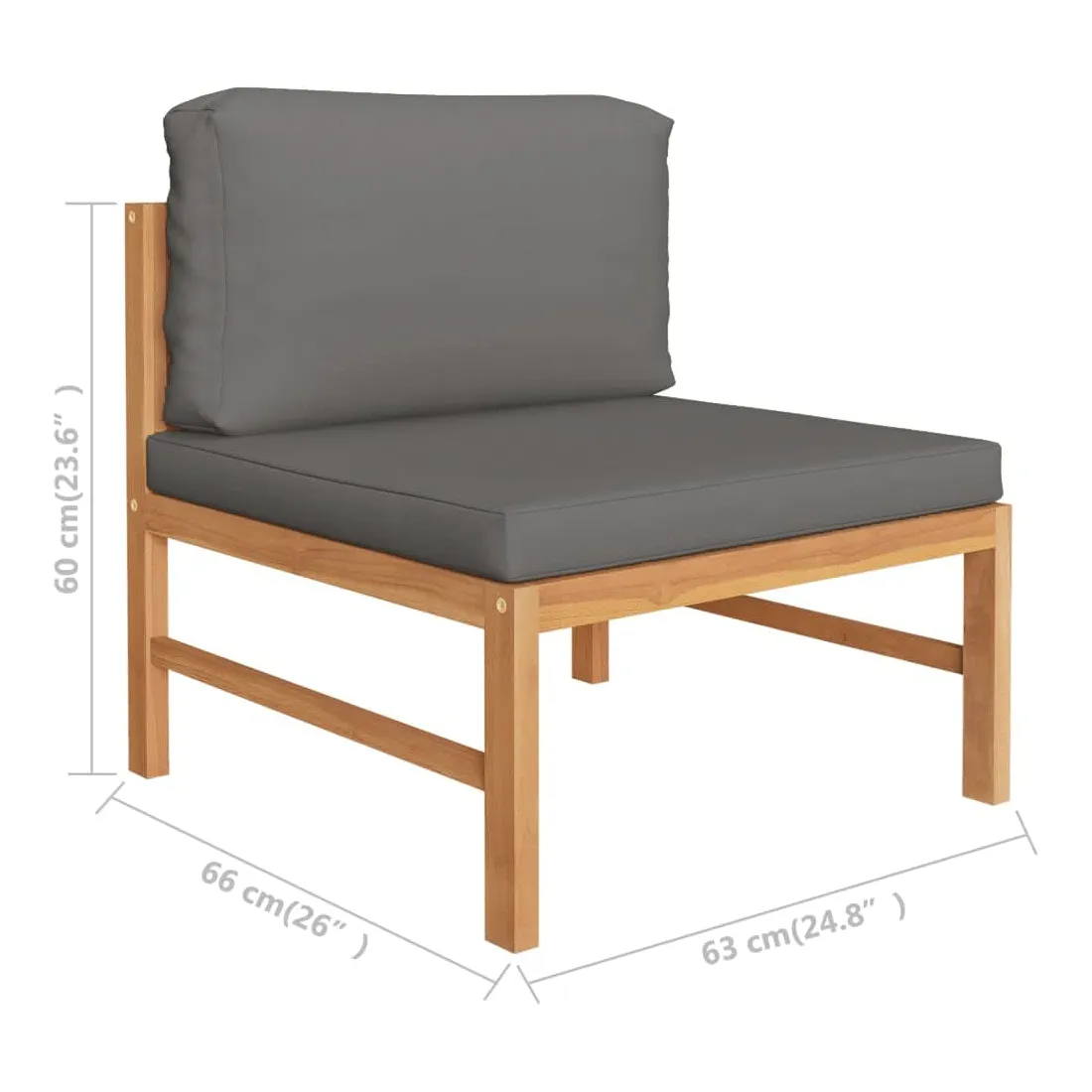 - Dimensions du canapé de milieu : 63 x 66 x 60 cm (l x P x H)