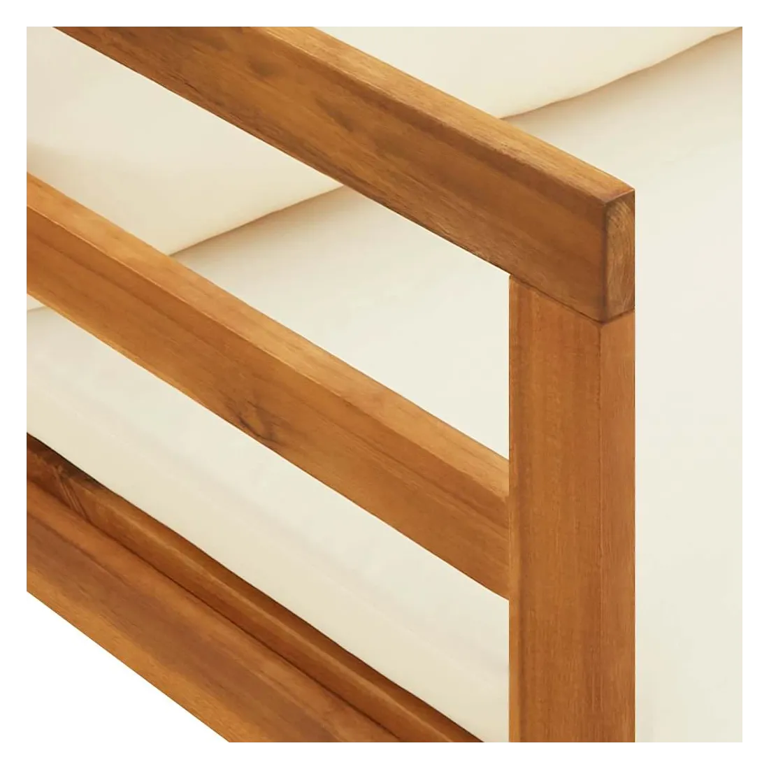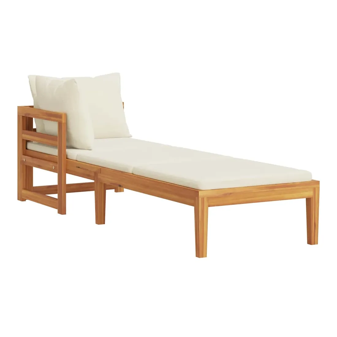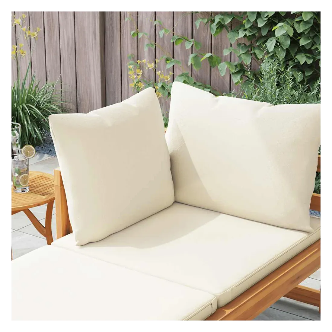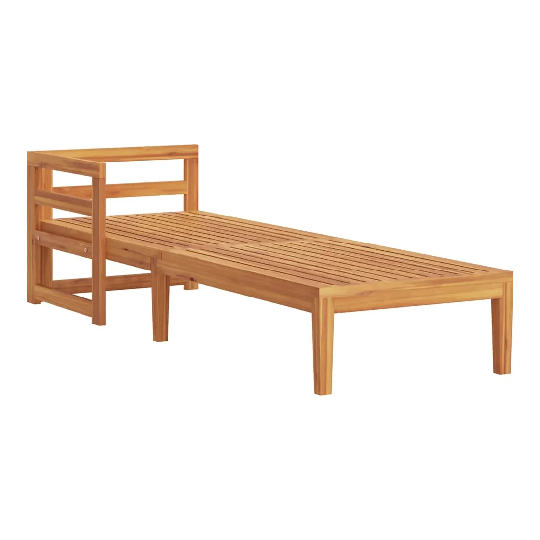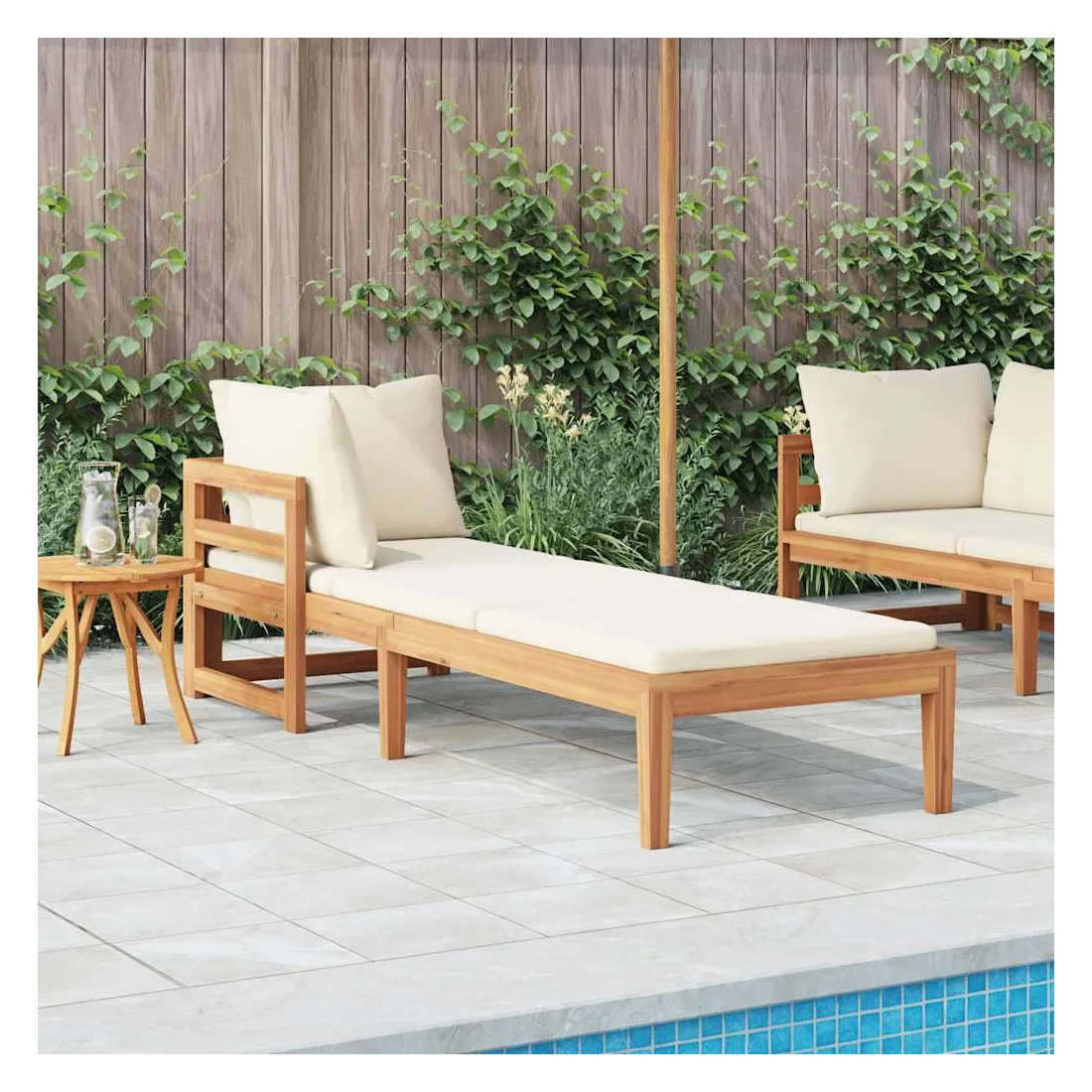 Profitez d’un moment de détente agréable avec vos amis ou votre famille dans l’espace d'extérieur sur cette chaise longue en bois ! Cette chaise longue de jardin est fabriquée en bois d'acacia massif, un bois dur aux grains denses. Ce transat d'extérieur magnifiquement conçu est stable, durable et accrocheur. De plus, le savoir-faire exquis et les beaux grains de bois rendent chaque pièce légèrement différente l'une de l'autre. Les coussins inclus ajoutent plus de confort au repos. De plus, l'accoudoir peut être monté à gauche ou à droite. Remarque : afin de prolonger la durée de vie de vos meubles d'extérieur, nous vous recommandons de les nettoyer régulièrement et de ne pas les laisser à l'extérieur sans protection inutilement.Nettoyage : Utiliser une solution savonneuse douce.Stockage : si possible, stockez dans un endroit frais et sec à l'intérieur. Si le produit est stocké à l'extérieur, protégez-le avec une housse imperméable. Essuyez et séchez l'excès d'eau ou de neige des surfaces planes après la pluie ou une chute de neige. Permettez une circulation d'air suffisante afin d'éviter les dommages liés à l'humidité.